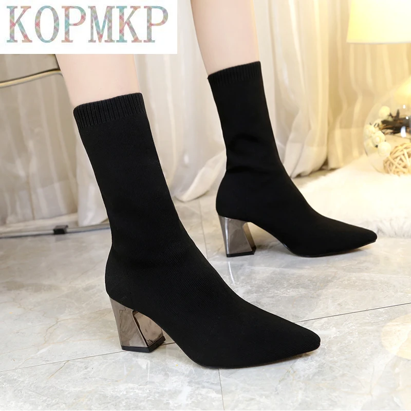 2021 г., зимние сапоги-носки сапоги из эластичной ткани модная женская обувь женские демисезонные ботильоны женские ботинки