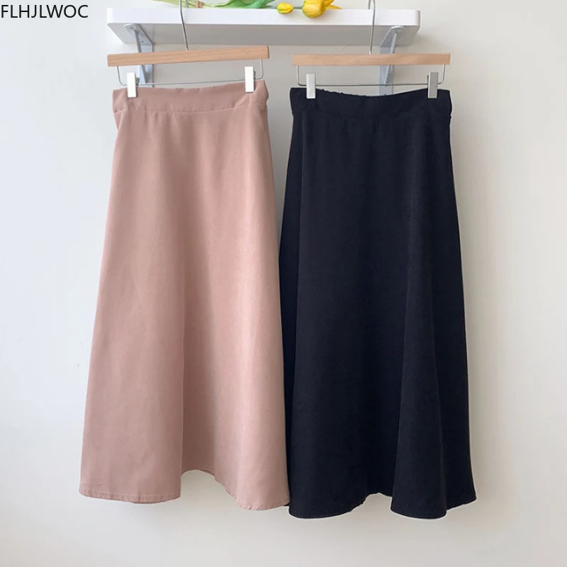 Женская Повседневная юбка-зонтик, однотонная длинная юбка трапециевидного силуэта, с завышенной талией, в стиле преппи, для свиданий, осень 2020