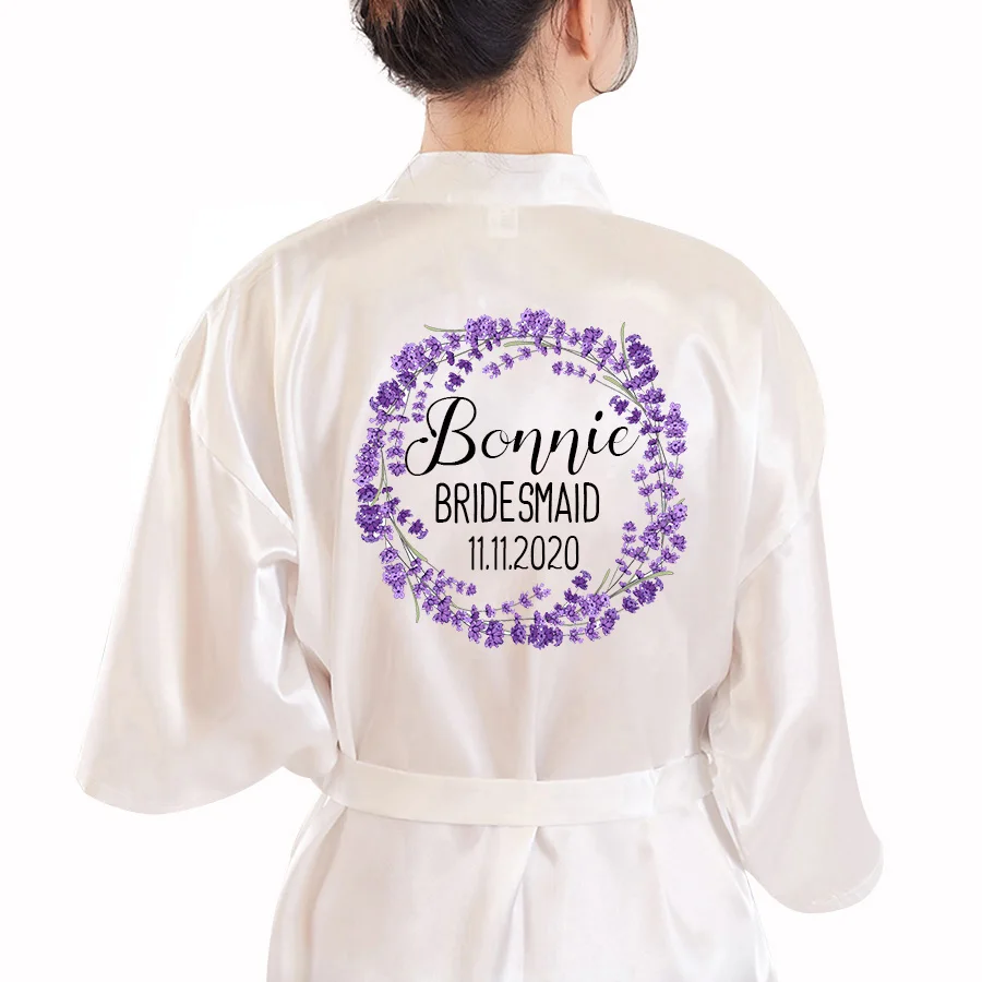 Халат невесты с лавандовым принтом, Шелковый Атласный халат-кимоно