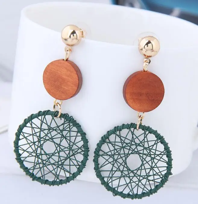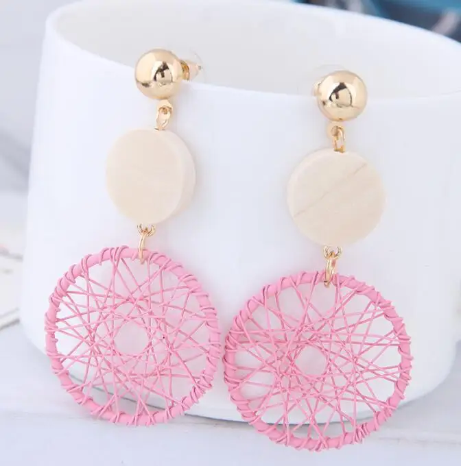 Серьги-клипсы в Корейском стиле женские, длинные деревянные геометрические украшения, милые розовые свадебные украшения, бижутерия, 2020