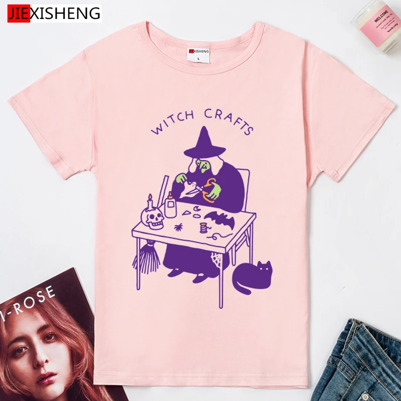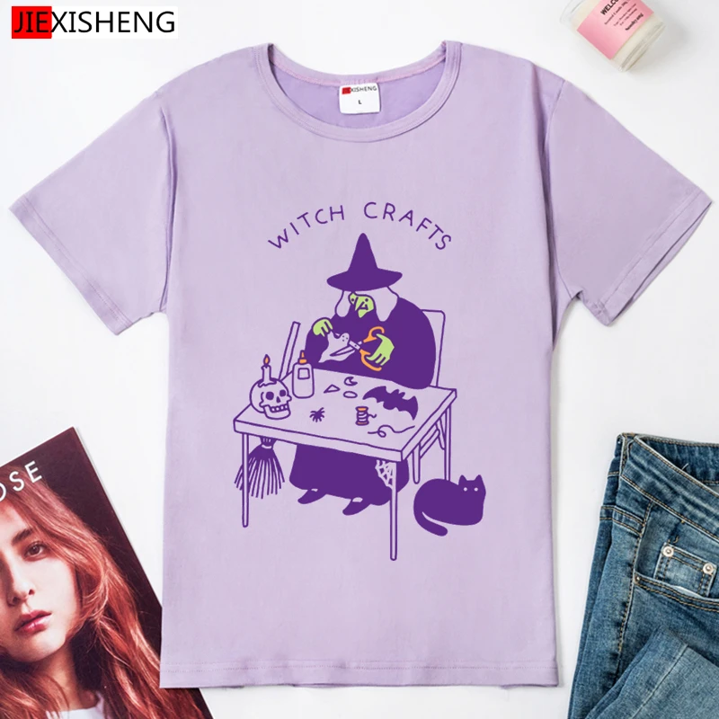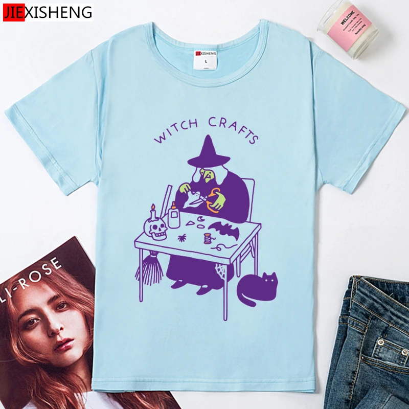 Женская футболка с принтом ведьмы, летняя модная футболка с коротким рукавом и круглым вырезом, женские белые топы, женская одежда HH800
