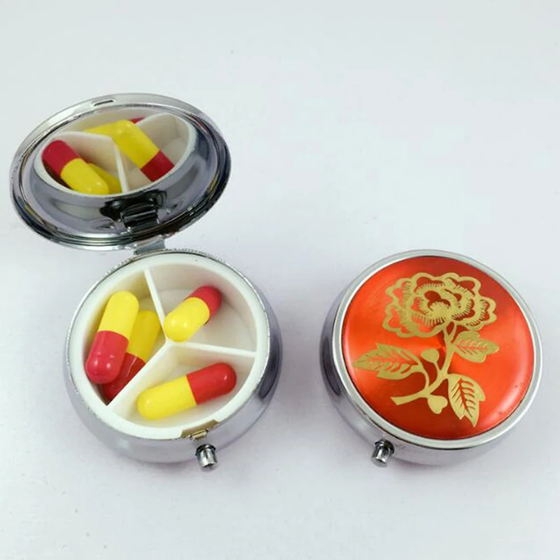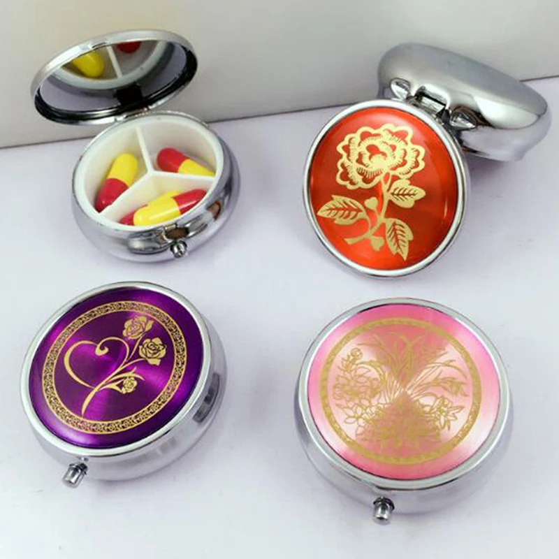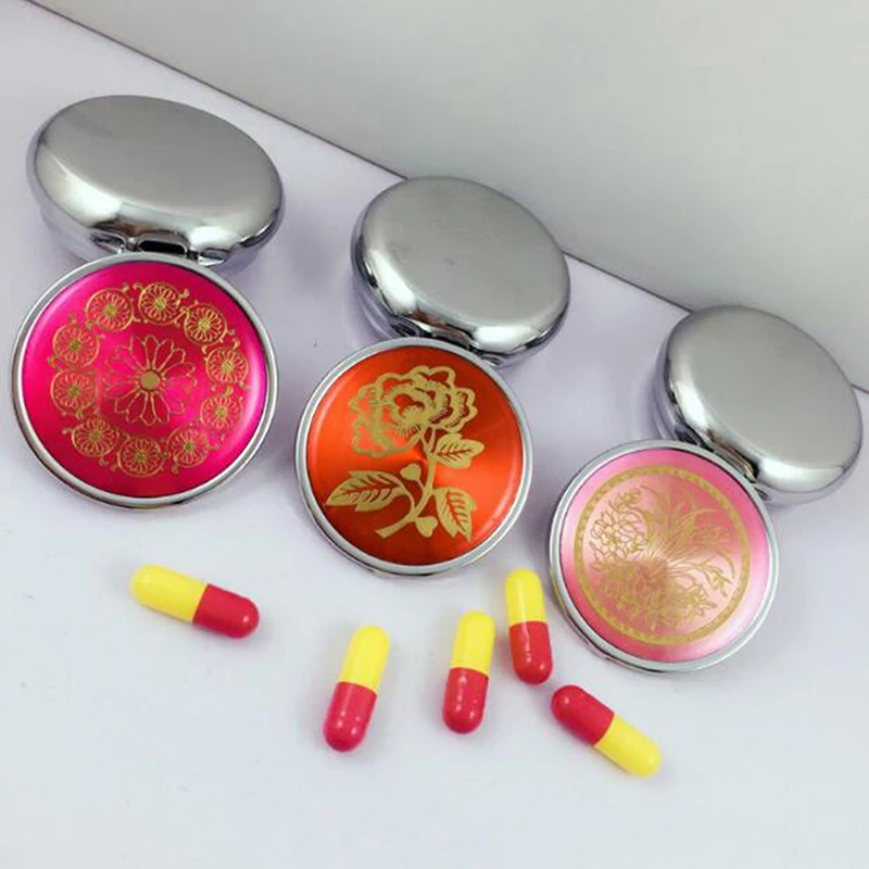 1 шт. Органайзер коробка цвет случайный металлический круглый цветочный принт складной чехол для таблеток медицина Путешествия Макияж Контейнер для хранения
