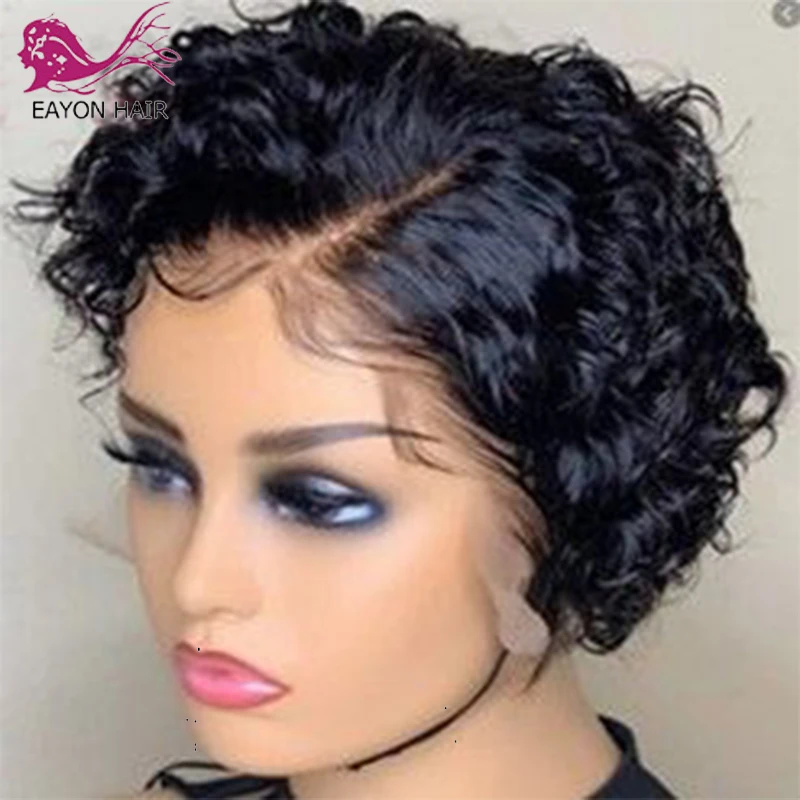 Парик Боб EAYON, короткие кудрявые волосы, плотность 180, парик из натуральных волос Реми, бразильский 4x4
