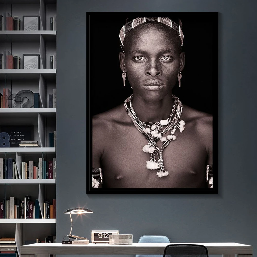 Настенная картина в африканском стиле для мужчин и женщин, портрет, украшение для дома, черно-белый холст для гостиной, картина на стену