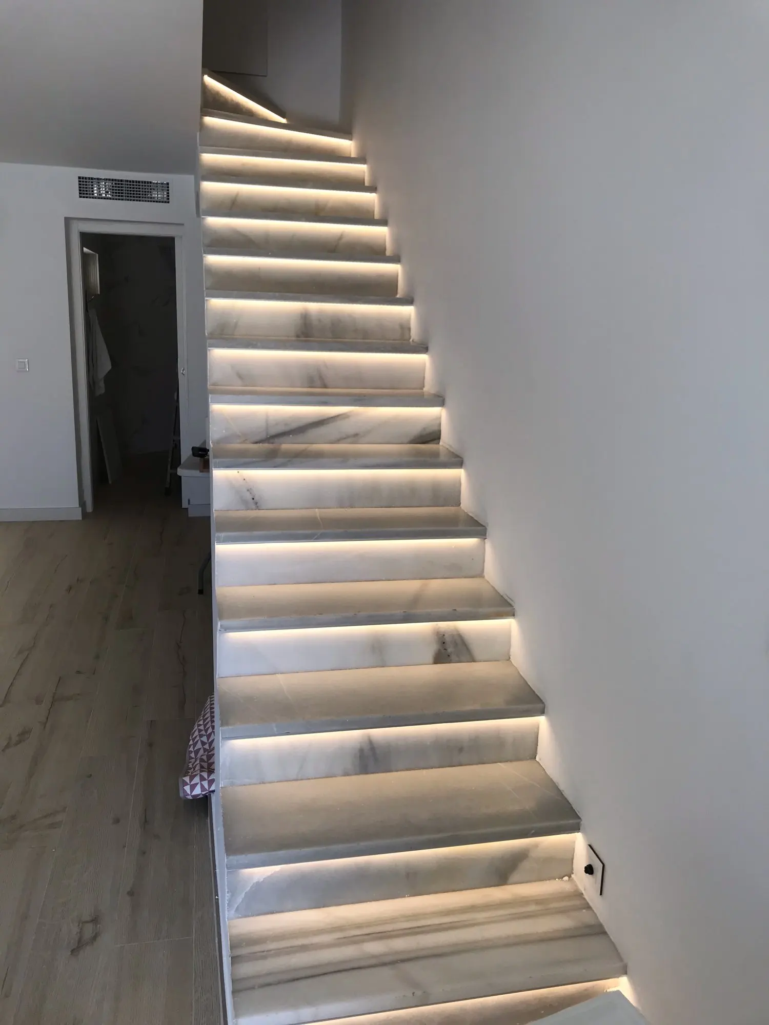 Действительно классный эффект, хорошо работает. Легко получить его для работы. Эффект не выцветает для отдельных шагов, но эффект выцветания. Общее время, чтобы получить все шаги, которые будут включены, может быть настроено, но продолжительность, как долго они остаются включенными, фиксирована. Количество шагов с подключенной световой полосой легко определить. Рекомендуется.