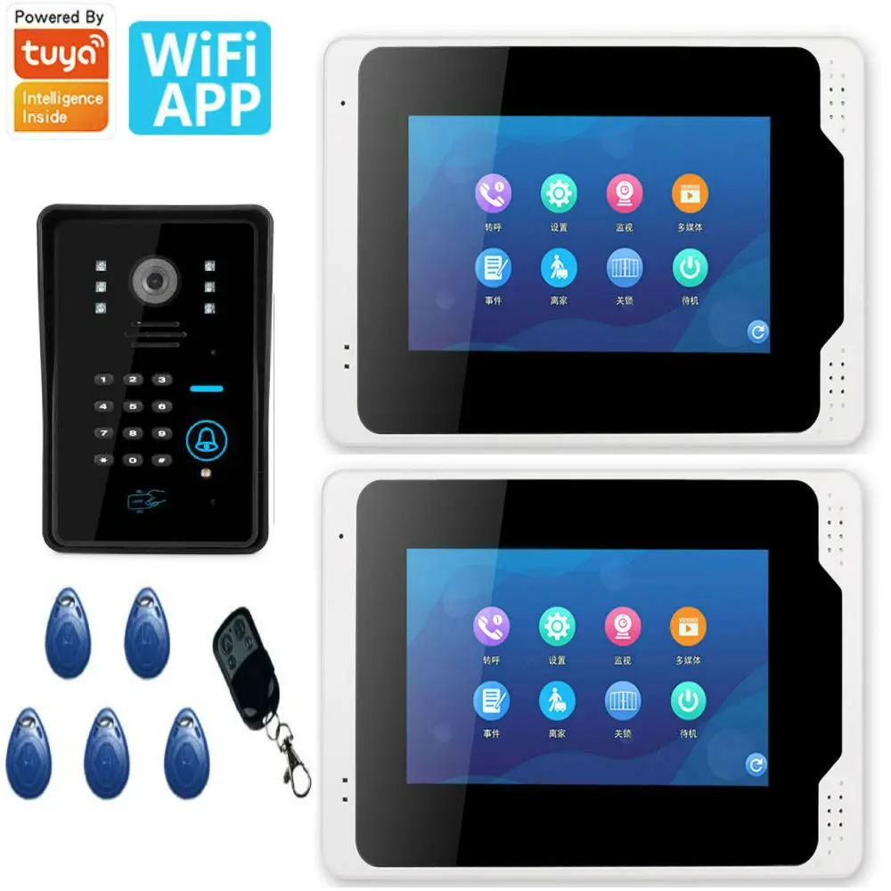Приложение Tuya, 7 дюймов, проводной/беспроводной Wifi, ip-видео телефон, дверной звонок, домофон, система входа с проводной камерой 1080, ночное видение, поддержка удаленного приложения, разблокировка, запись, снимок
