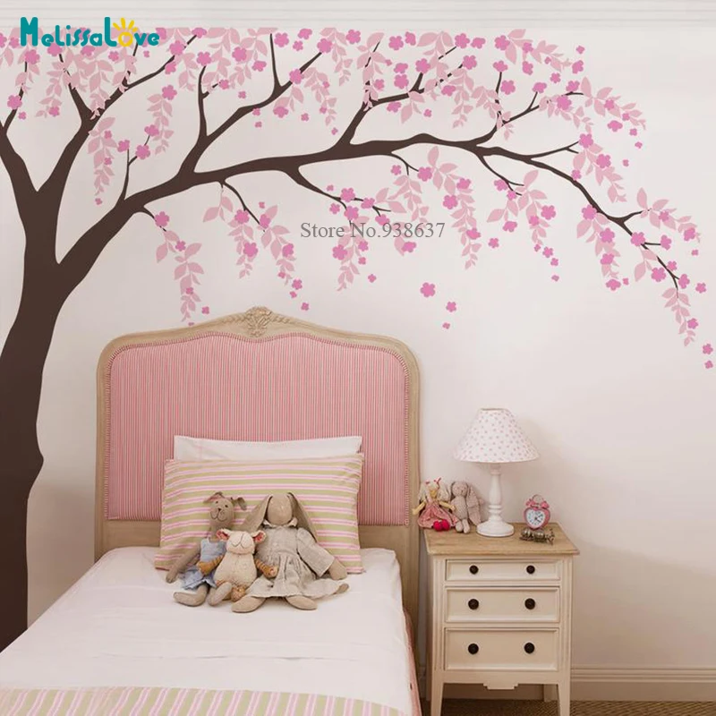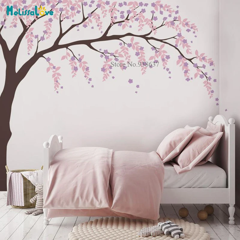 Вишневое дерево с цветами, настенная фотография, ивовое дерево, детская комната для девочек, фотография, съемная виниловая настенная наклейка bb752