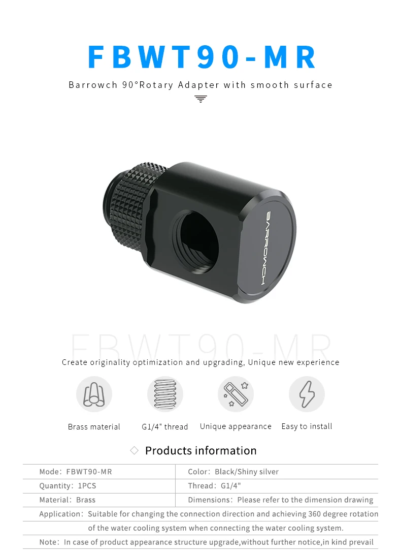 Barrowch, резьба Поворотный переходник дюйма G14 дюйма, 90 , чернаясеребристая, с гладкой поверхностью воды, адаптеры охлаждения металлическая, с наружной резьбой на женскую FBWT90-MR