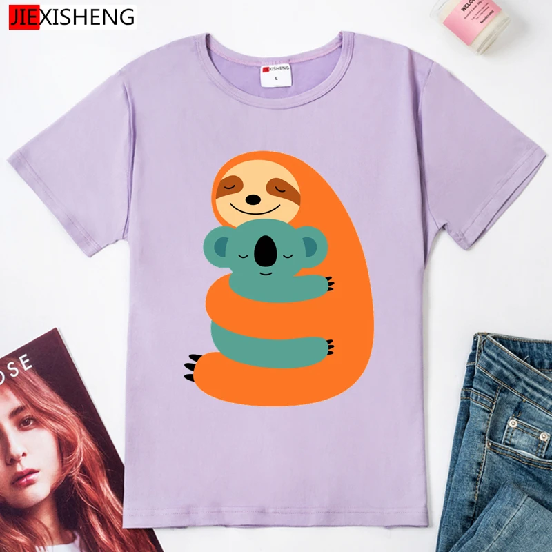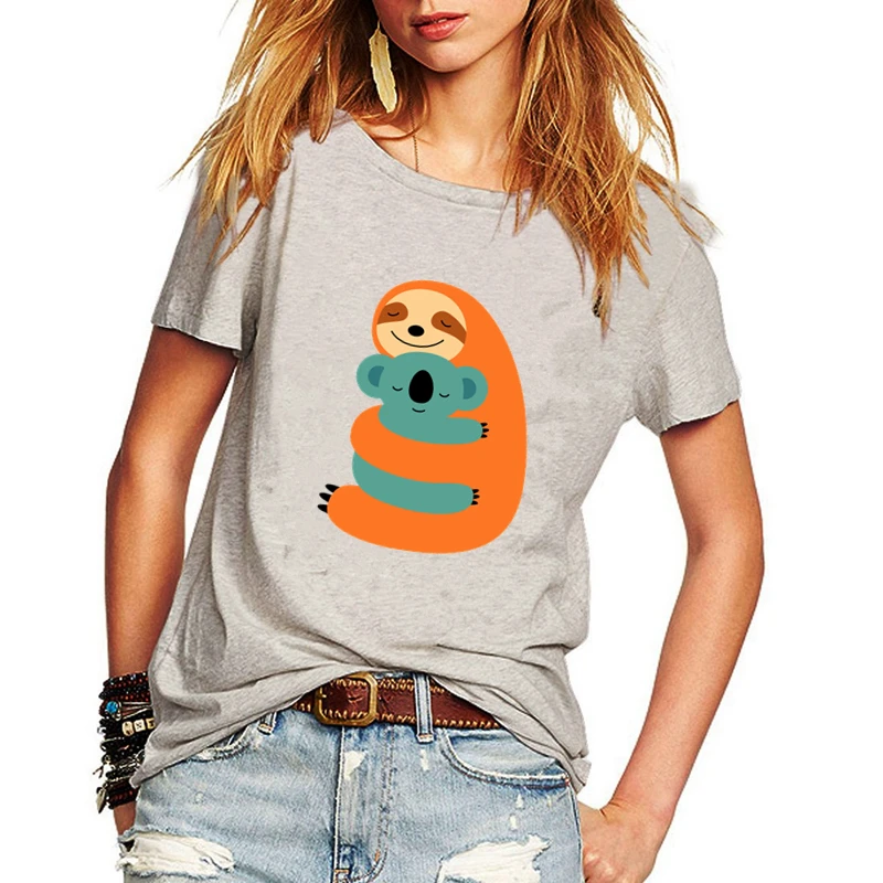 Женская футболка с мультяшным с принтом "Ленивец", Повседневная фут...