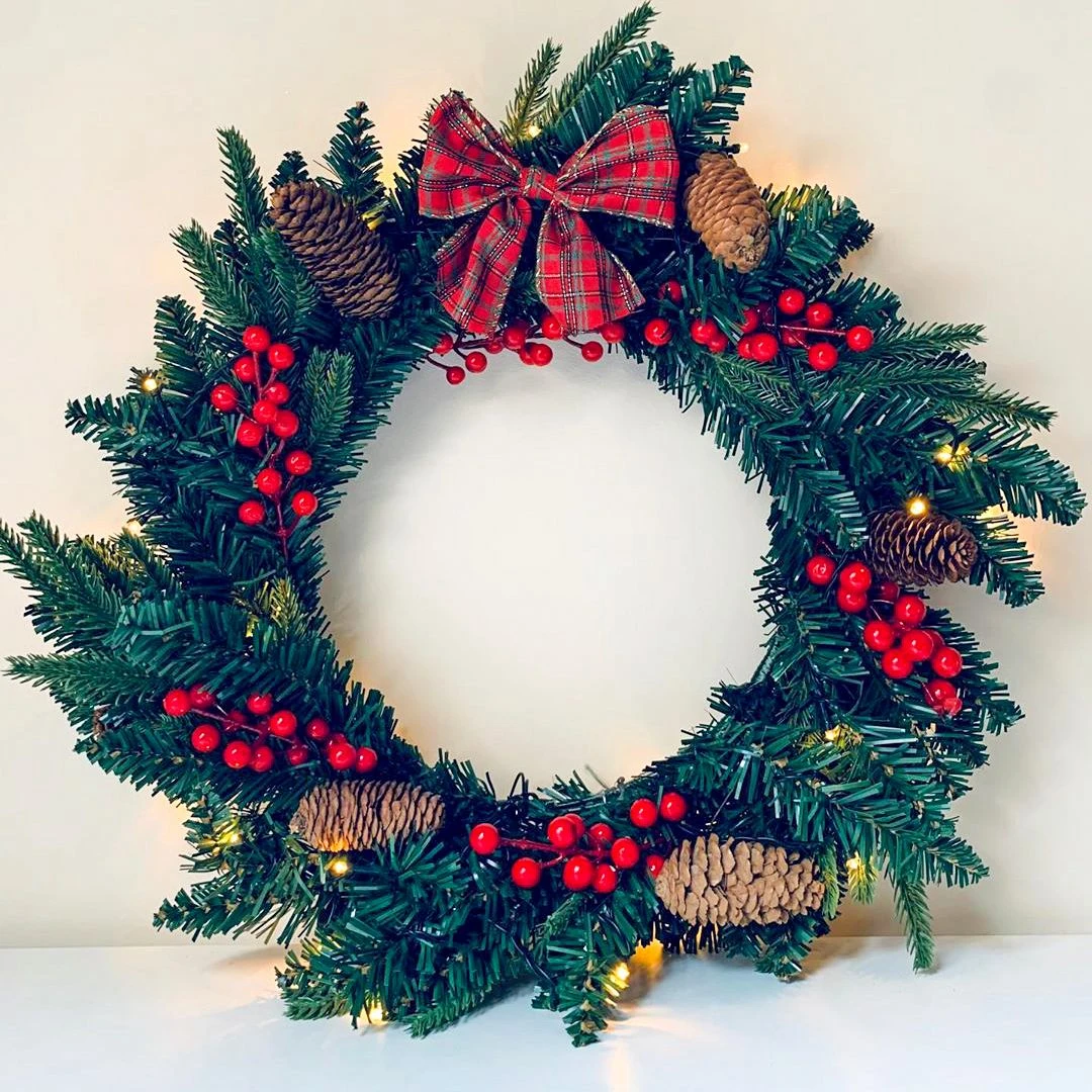1 Набор Рождественский венок, натуральные Ротанговые сосновые ветки, ягоды и сосновые конусы для творчества, Рождественский венок, принадлежности, украшение для двери дома