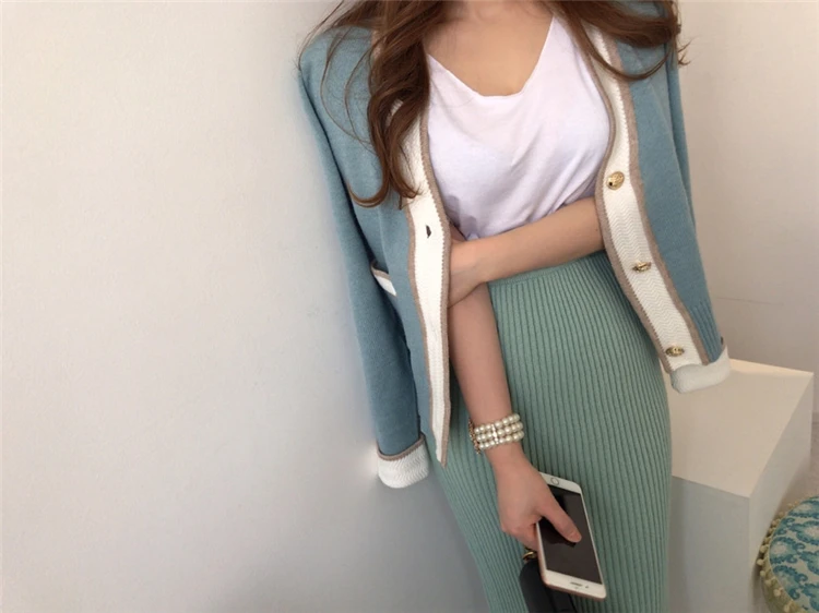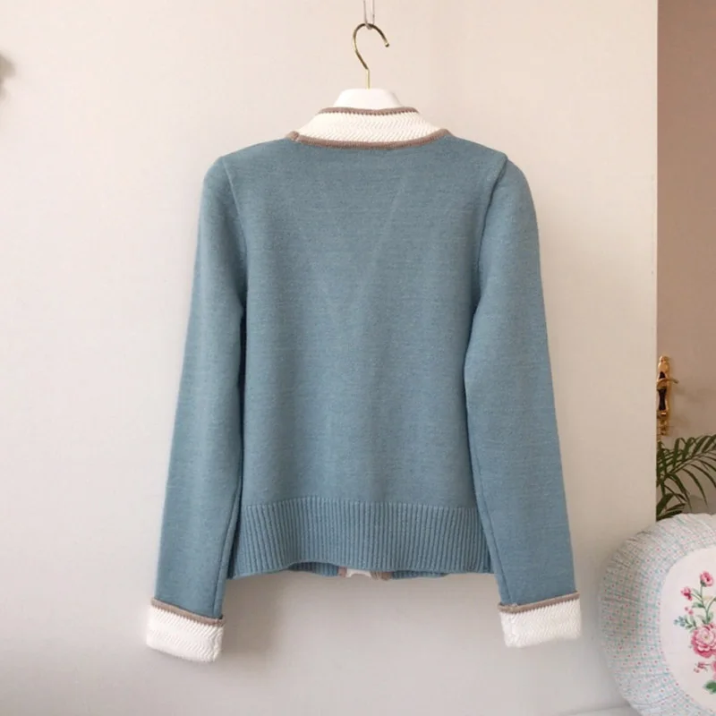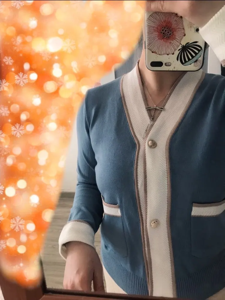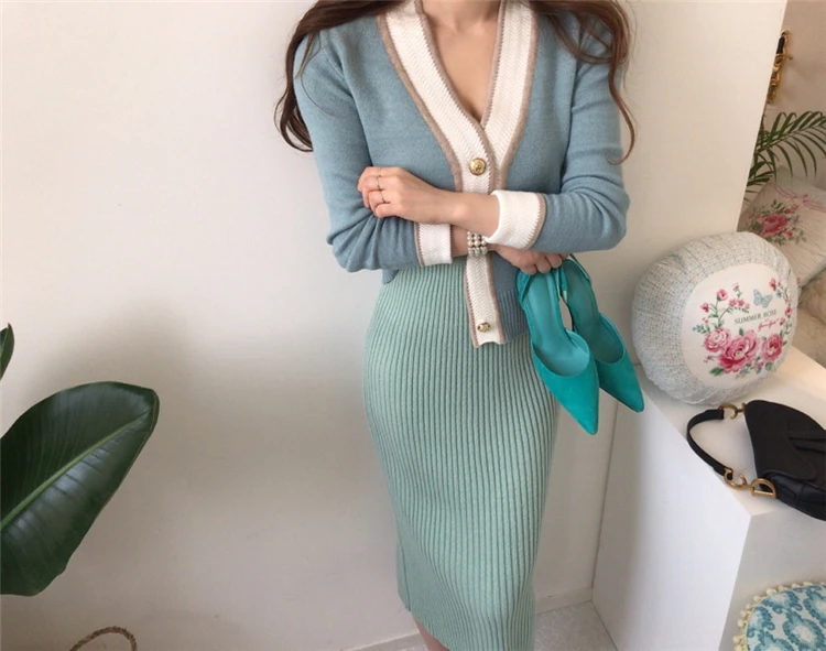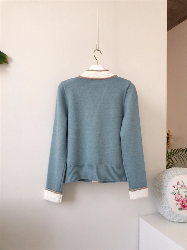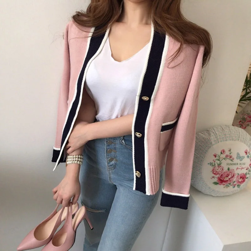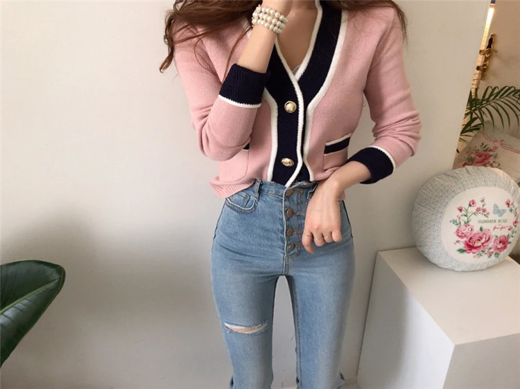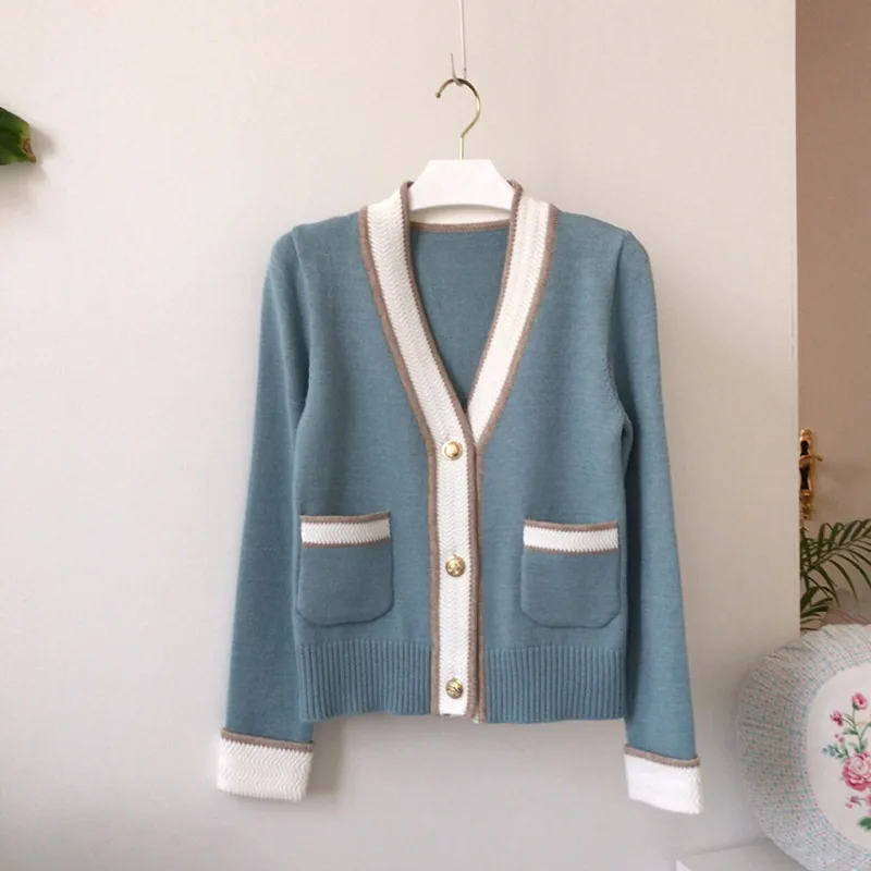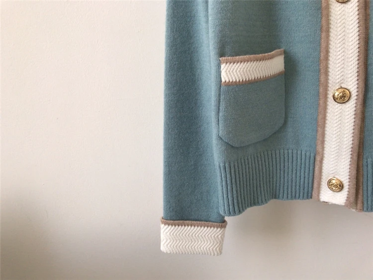 Кардиган женский трикотажный, голубой или розовый, с V-образным вырезом и карманами, Осень-зима 2020
