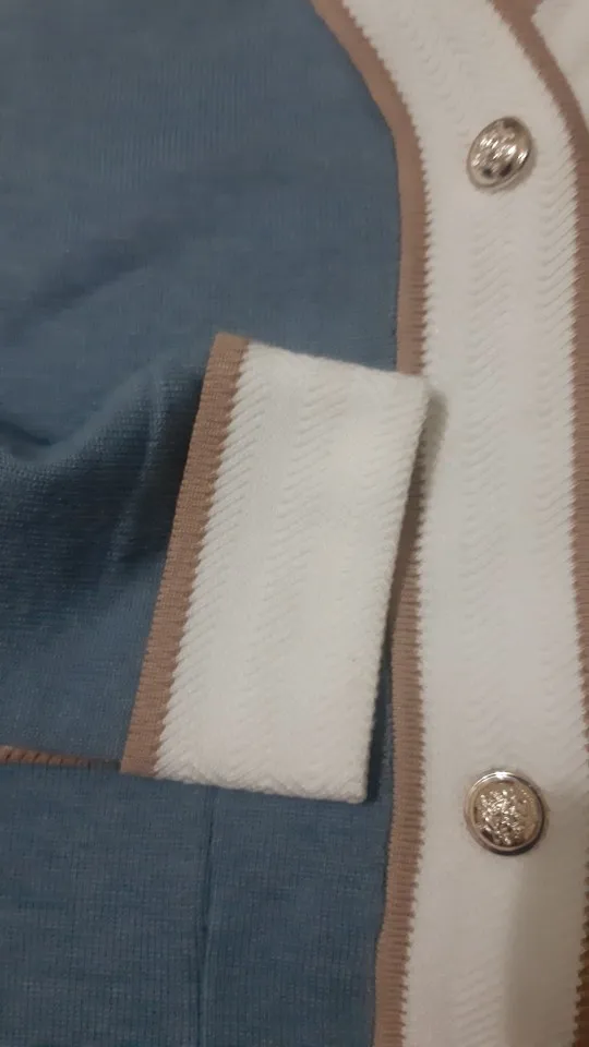 Пуговица немного «sucin», всего 3 кнопки, чтобы закрыть и не одинаковые размеры между ними. Я объясню: между пуговицей сверху и средней (размер) мы измеряем 12,5 см, но,! Между пуговицей середины и нижней части, мы измеряем 17,5 см! Это означает, что между талией и нижней частью жилетка открывается очень много, она «позволяет» появиться, нижнее белье под ними. Мне придется пришивать 2 дополнительные кнопки между уже размещенными на месте. И, если я не могу найти одинаковые кнопки, я должен их все изменить. Не могу сказать, что цвет хороший, он измеряет грудь 88 см для размера S.