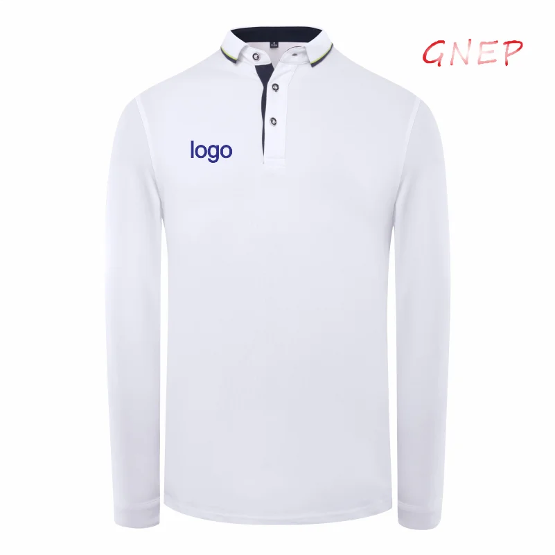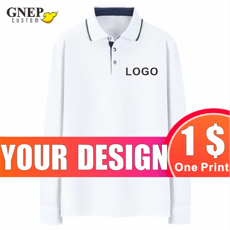Мужская рубашка-поло GNEP с длинным рукавом, удобные дышащие повседневные топы на заказ, Недорогая модная Однотонная рубашка с отложным воротником и принтом