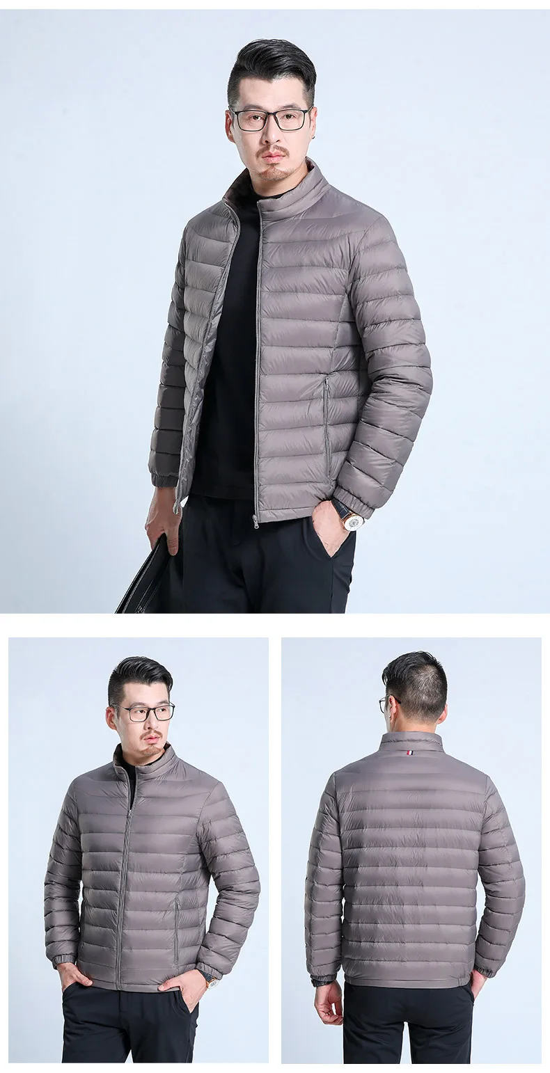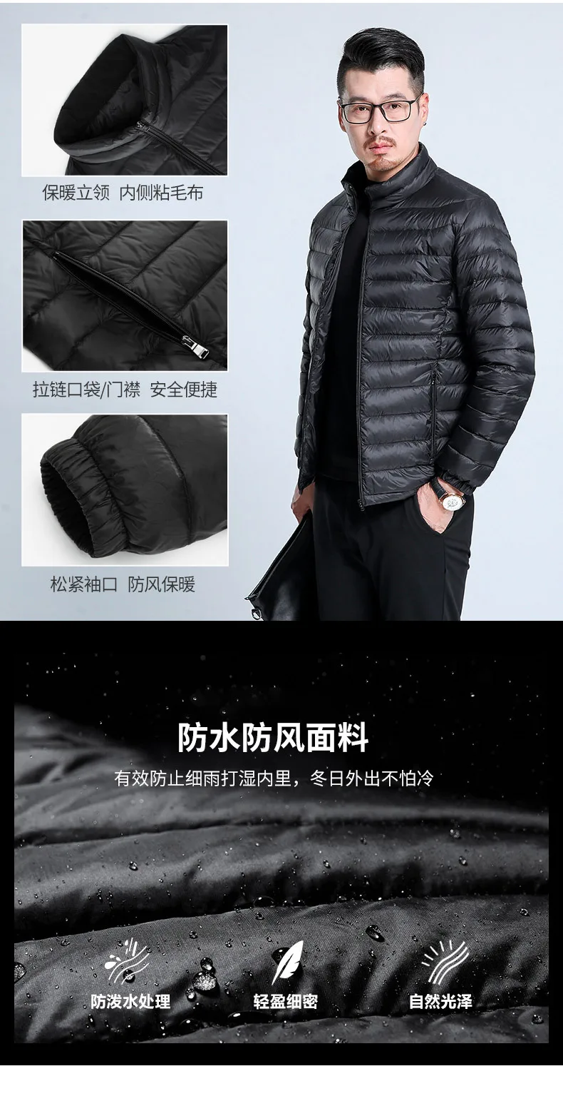 Мужской короткий пуховик, осенне-зимняя уличная ультратонкая теплая хлопковая одежда, Молодежный Повседневный пуховик с воротником-стойкой большого размера, топы