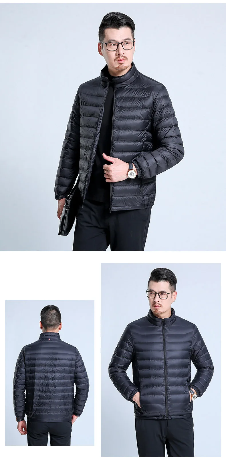 Мужской короткий пуховик, Осень-зима, ультратонкий, теплый, хлопковый, Молодежный, большого размера, с воротником-стойкой