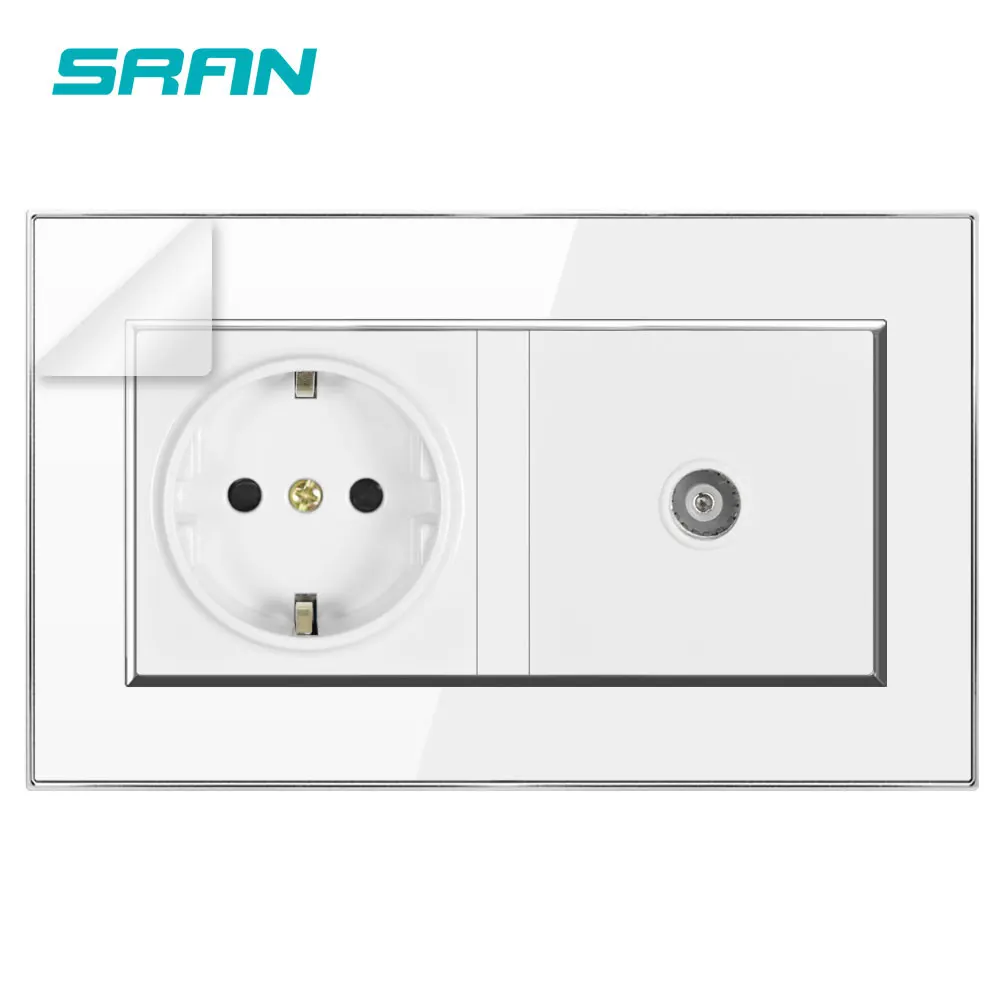 SRAN EU настенная розетка + ТВ розетка CAT5 огнестойкая кристальная акриловая панель 146*86 мм электрическая розетка черный/белый/золотой