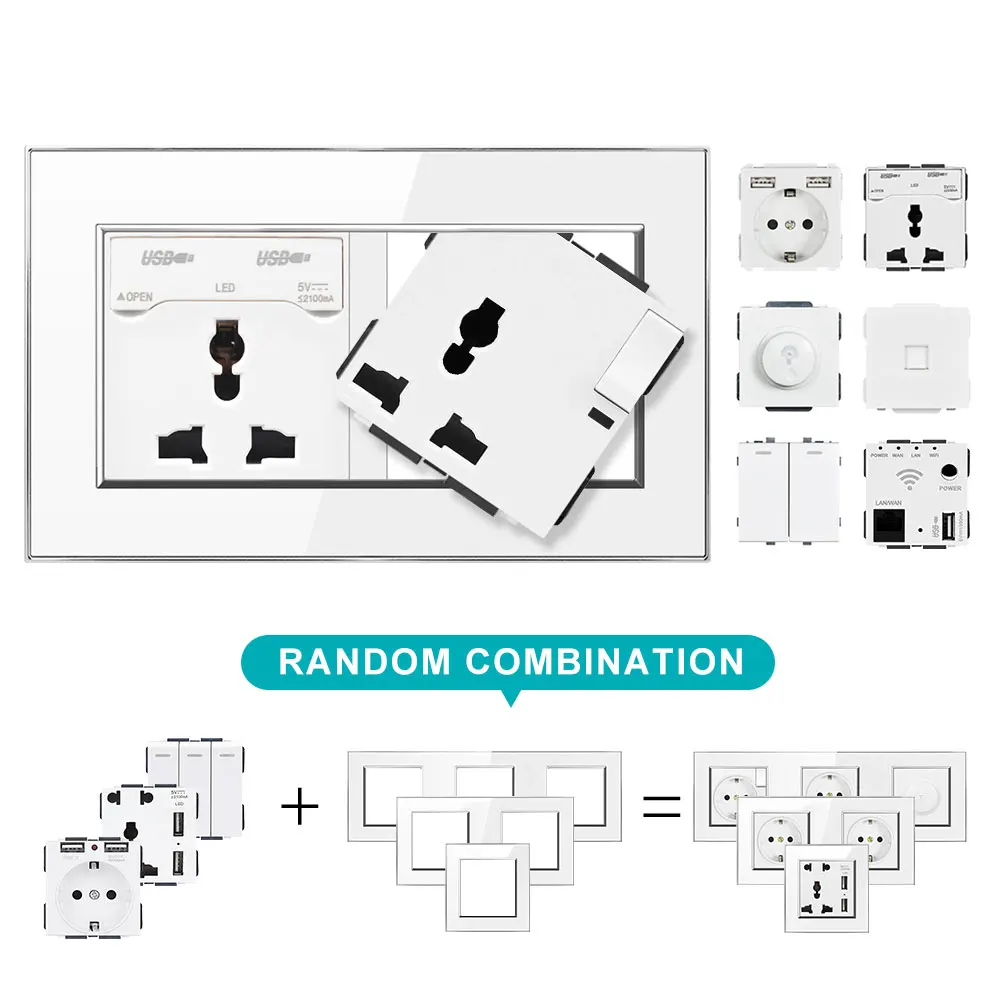 Настенная розетка SRAN с интернетом, кристальная панель из закаленн...