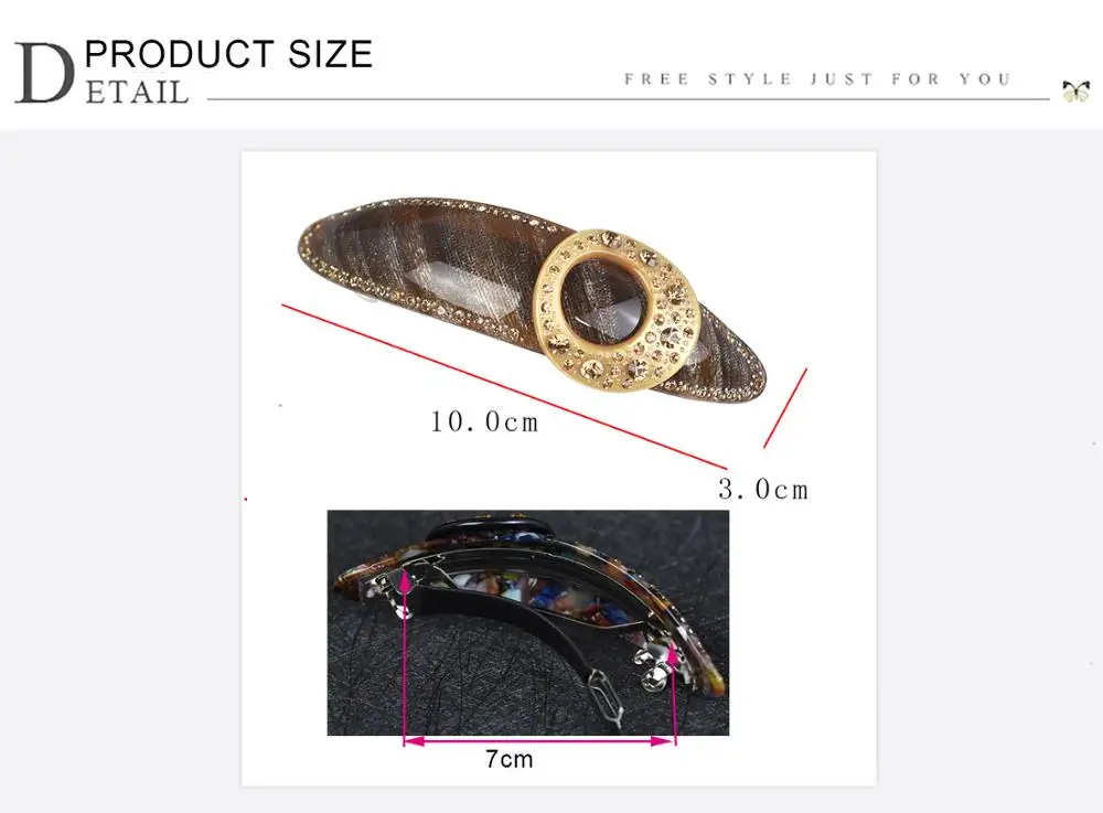 Женские головные уборы из ацетата, милые заколки для волос, модные Винтажные заколки для волос, большие стразы, аксессуары для волос для женщин