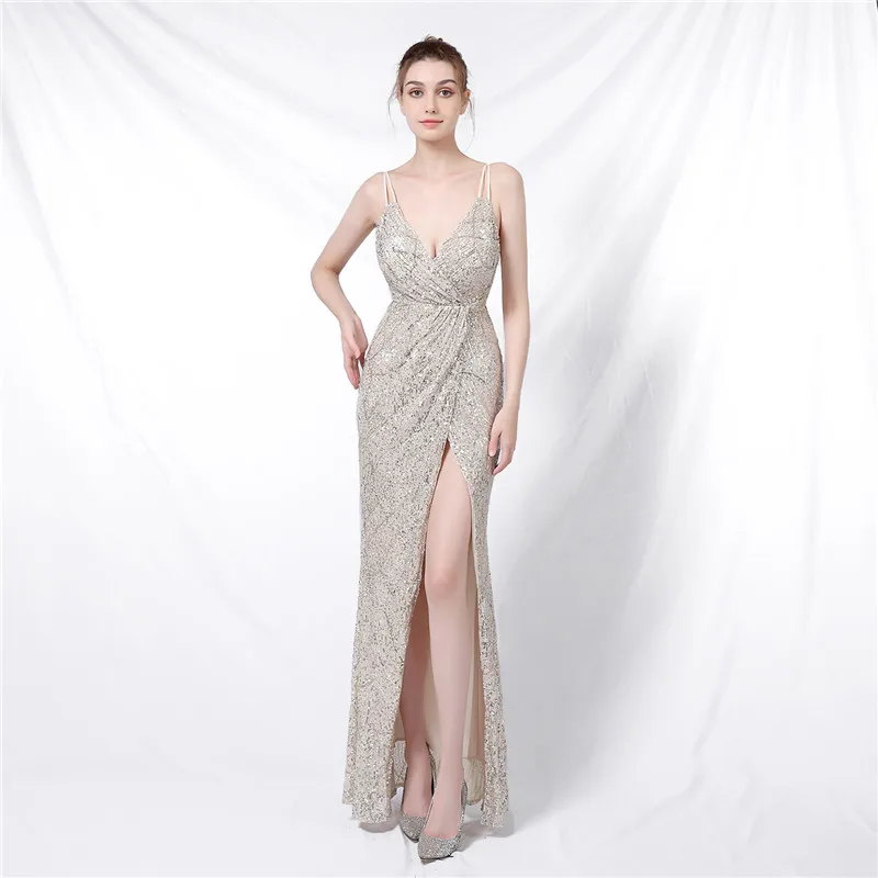 Роскошные женские вечерние платья на тонких бретельках с глубоким v-образным вырезом и открытой спиной, с открытым разрезом, 2020, модное элегантное платье для ночного клуба