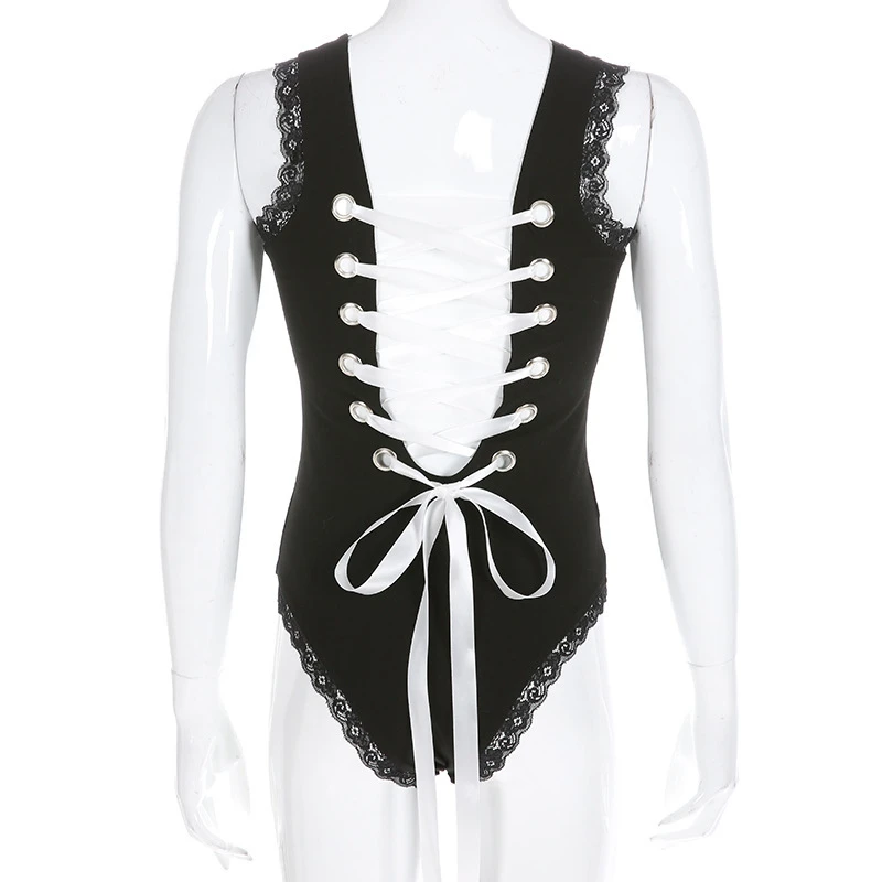 Комбинезон женский на шнуровке, облегающий эластичный Боди без рука...