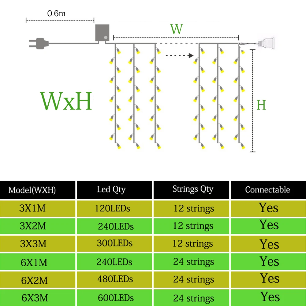 6x3 М 600 светодиодов для дома, Рождества, праздника, Декоративная ...