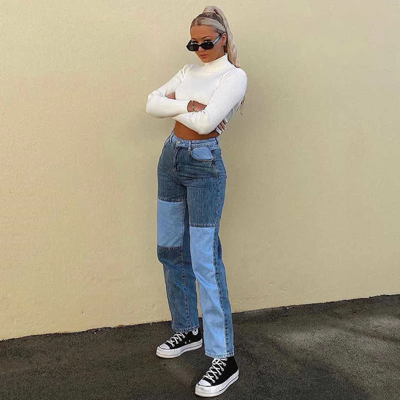 2021 модные женские джинсы в стиле пэчворк с цветными блокировками ...