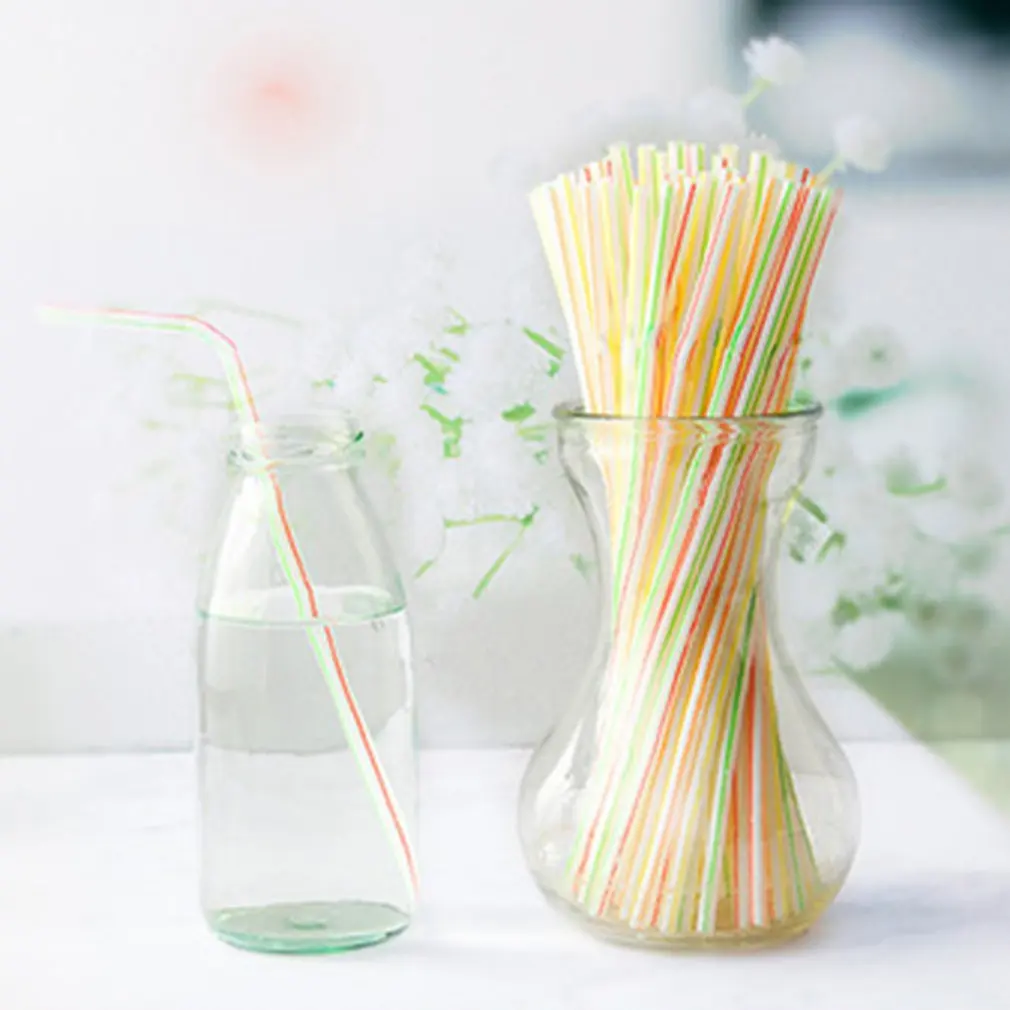 500 шт. одноразовые пластиковые соломинки, многоцветные полосатые п...