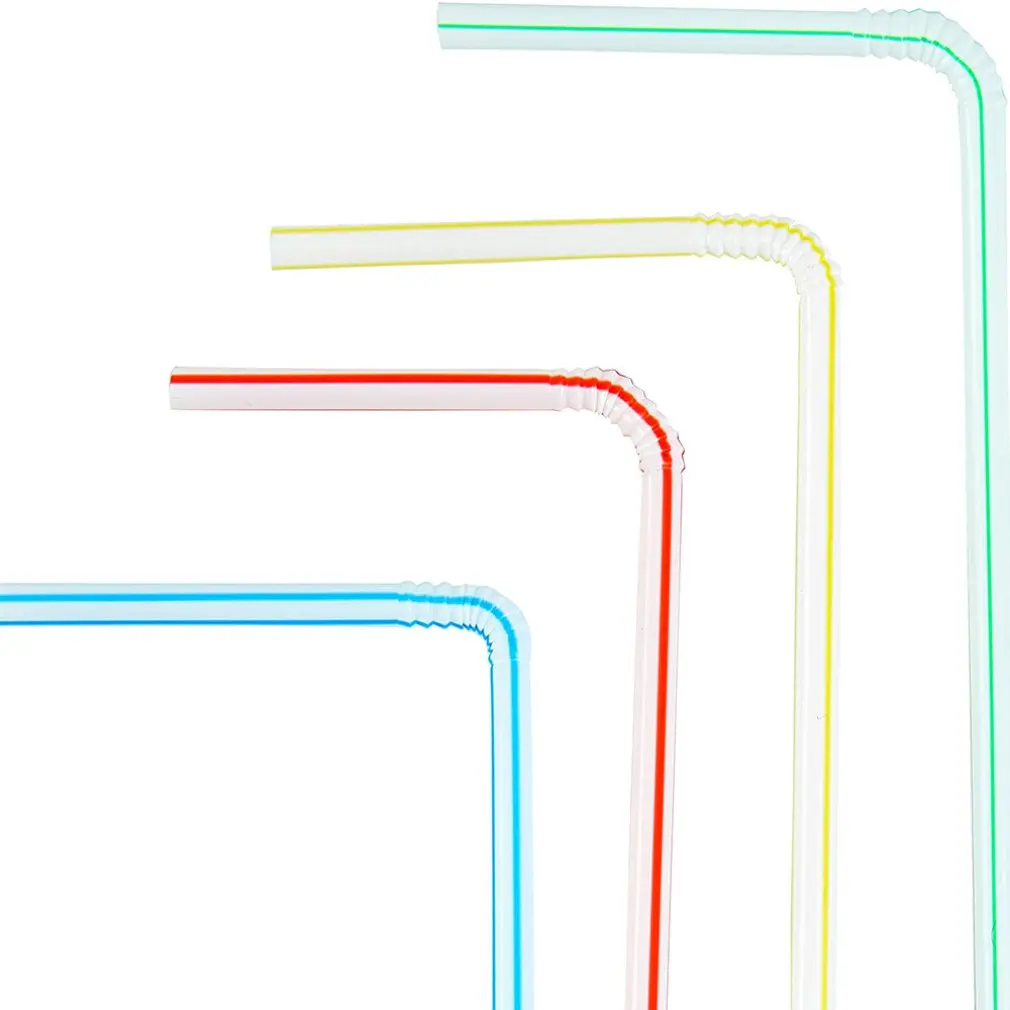 500 шт., гибкие пластиковые соломинки в полоску, разные цвета