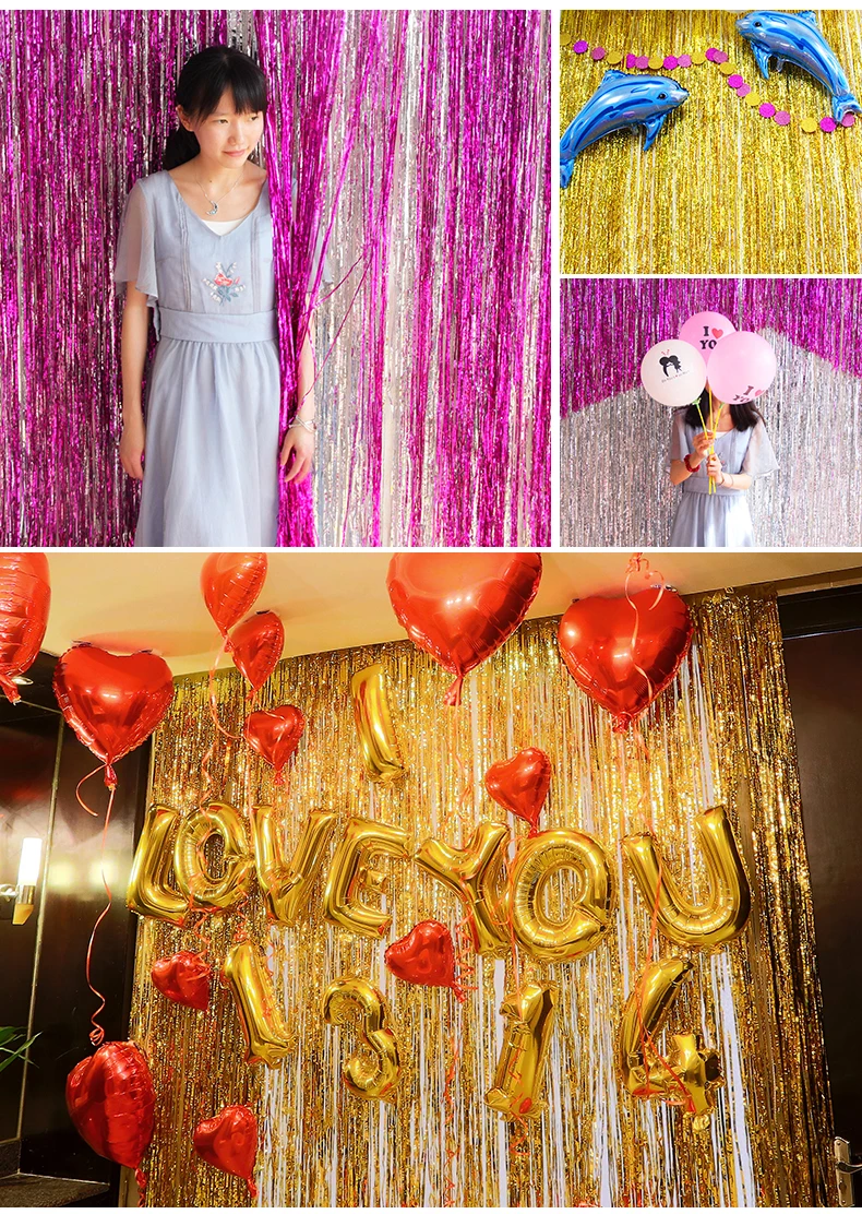 Занавеска из золотой фольги, занавеска из фольги, занавеска для детского душа, свадебный фон, кисточка, студийная занавеска