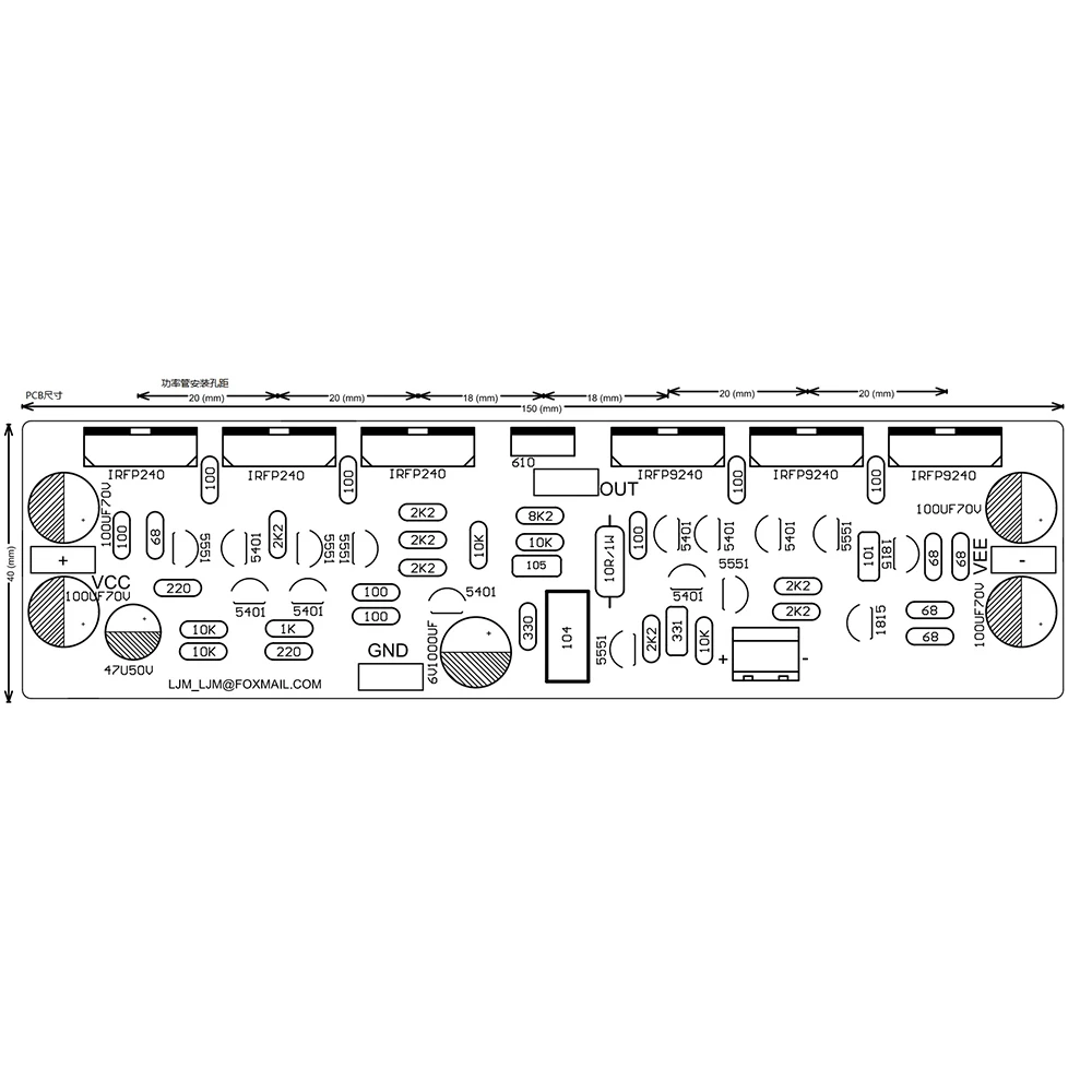 Размер печатной платы = длина 150 мм, ширина = 40 мм.