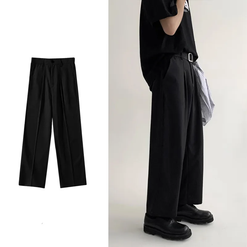 Брюки мужские прямые шелковые повседневные, модные деловые дизайнерские хлопковые Формальные свободные трендовые серыечерные костюмные, M-5XL, 2021
