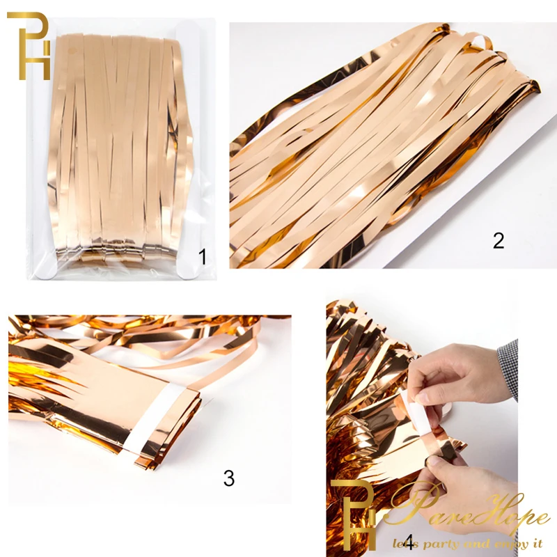 Декоративная занавеска для дня рождения, розовое золото, воздушный шар, кисточка, фольгированная занавеска с бахромой, декорация для детского праздника