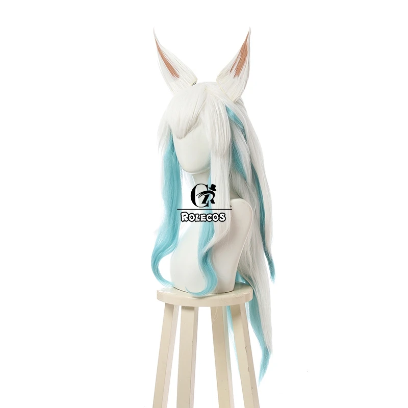 Парик для косплея ROLECOS Ahri, парик для косплея LOL Spirit Blossom Ahri, 80 см, белый смешанный синий головной убор, женский парик, Синтетические длинные волосы icon star icon star icon star icon star icon star