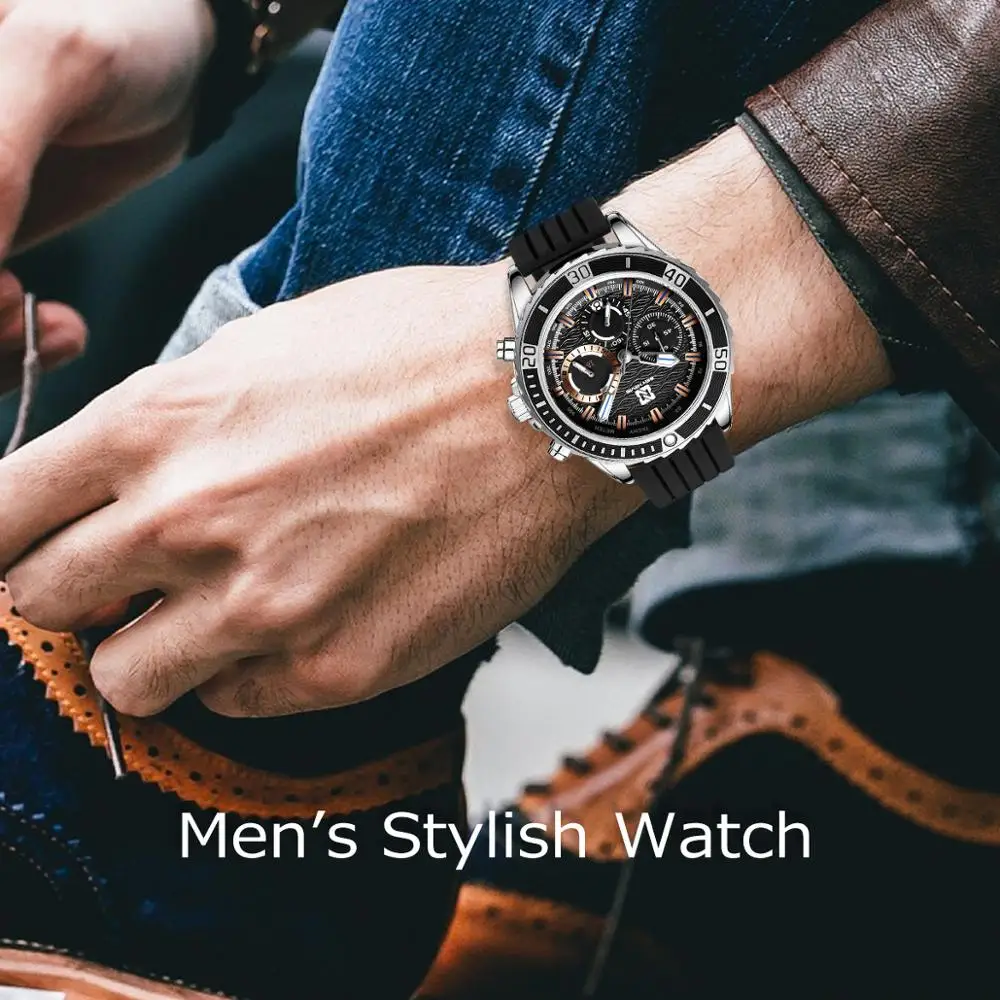 Часы мужские кварцевые с календарем, на резиновом ремешке, 2020