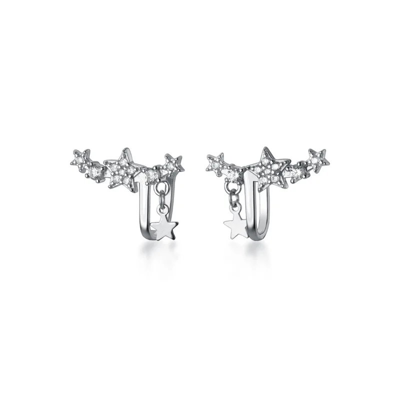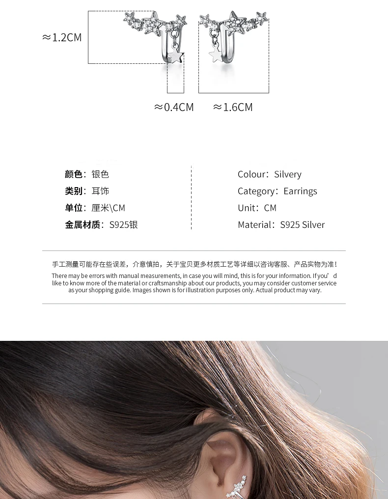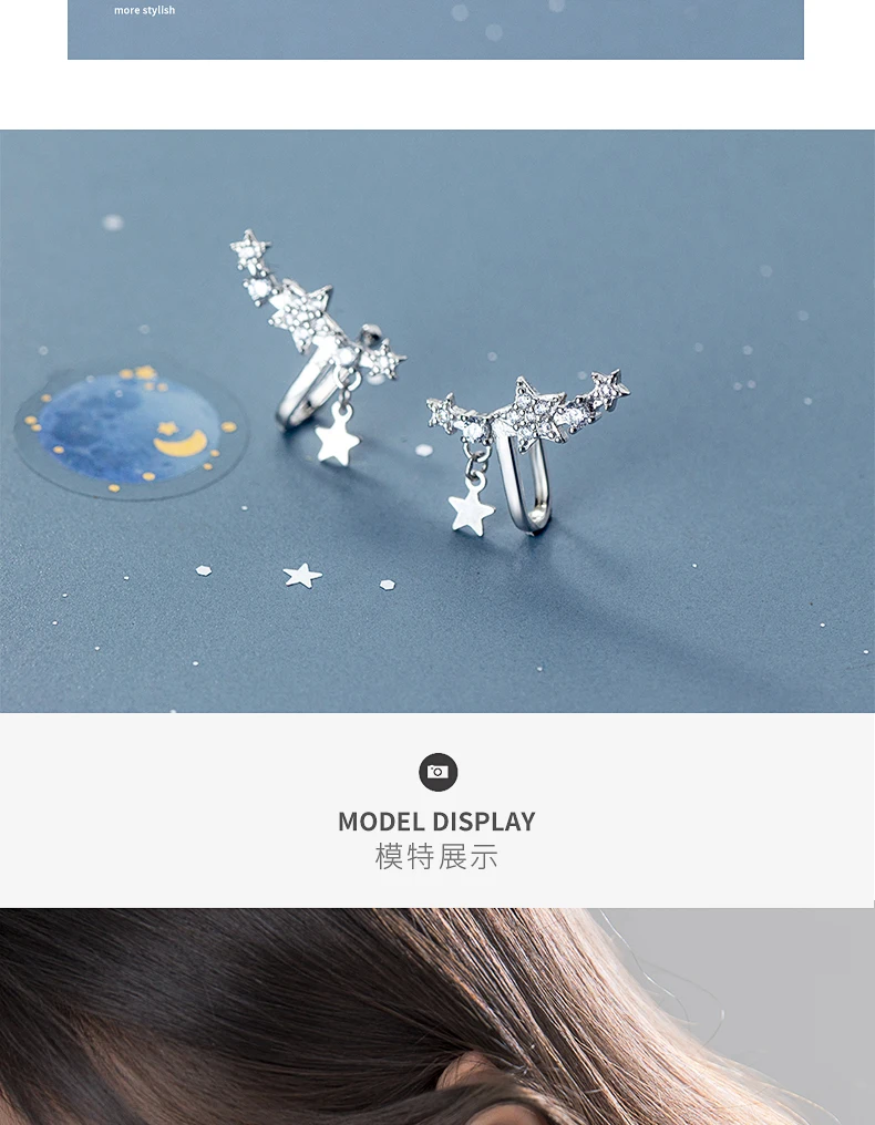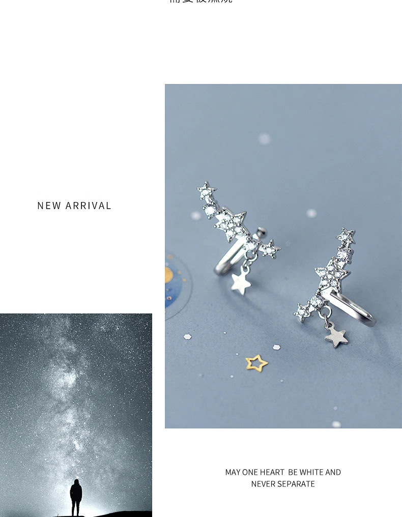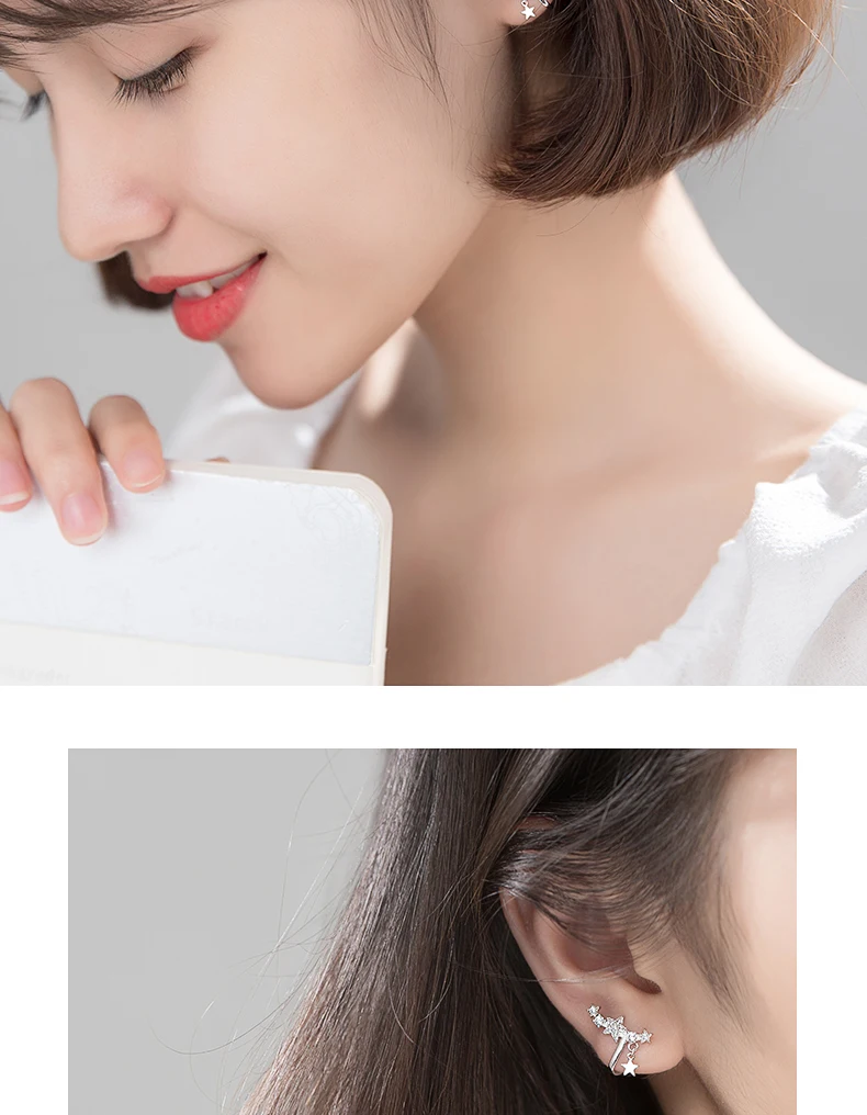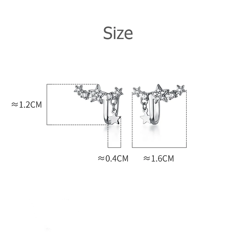 100% Настоящее 925 пробы серебро манжета для уха со звездой серьги милые циркониевые не проколотые Хрящевые серьги без пирсинг ушей