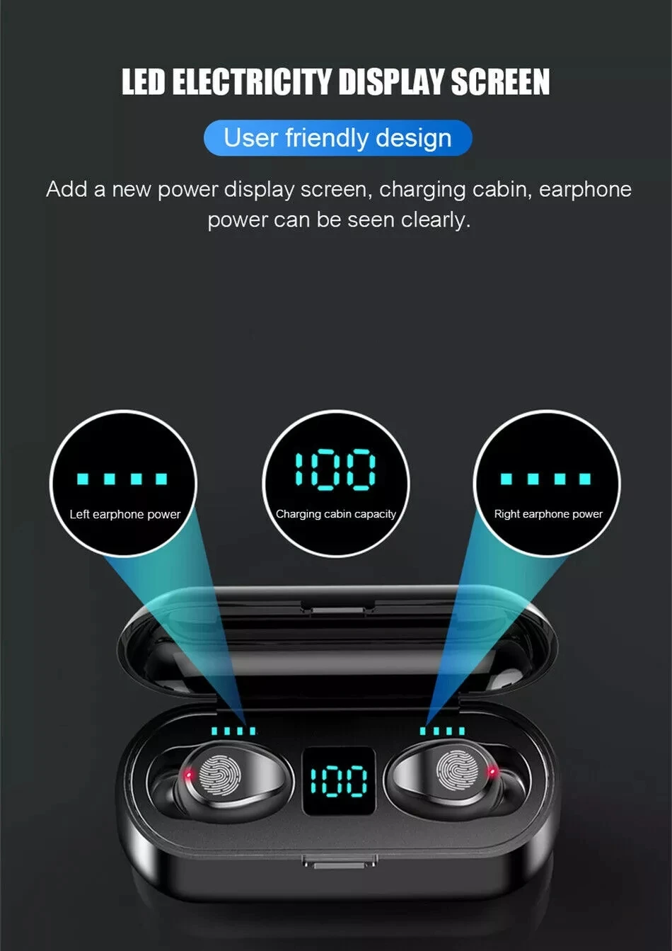 Характеристики:Модель: F9-01Тип наушников: наушники-вкладышиПротокол Bluetooth: hfp/hsp/a2dp/avrcpВремя прослушивания музыки: около 150 часов (включая перезаряжаемую батарею)Время работы в режиме разговора: около 150 часов (включая перезаряжаемую батарею)Чувствительность: 123 дБСопротивление: 32 ОмЧастотная характеристика: 20-20 кмгцЕмкость для зарядки: 2000 мАчРасстояние Bluetooth: около 10 метровВодонепроницаемость: натуральная ВодонепроницаемостьСпособ подключения: одно/двойное бесплатное использованиеЦвет: черный, белыйОсобенности: воспроизведение музыки/пауза, снижение уровня шума ответа на телефон, отображение мощности, голосовые подсказкиВерсия Bluetooth: 5,0Совместимые устройства: устройства Bluetooth для таких компаний, как Xiaomi, Samsung, Apple, Huawei и т. д. Oppo, live, Lenovo, планшет и т. Д. (при помощи Bluetooth необходимо использовать Bluetooth адаптер)Тип: 1 шт/2 штРазмер упаковки: 90*70*40 мм/3,54*2,76*1,57 дюймаВес: 135 гПримечания:В связи с различиями мониторов и эффектами освещения реальный цвет товара может немного отличаться от цвета на фотографиях. Спасибо!Возможно отклонение в 1-3 мм вследствие измерений вручную.