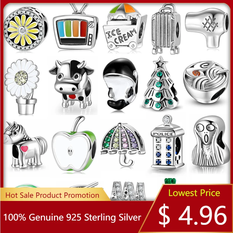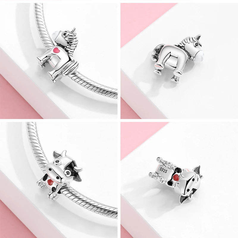 Шарм-бусина из серебра 925 пробы в виде коровы, Кита