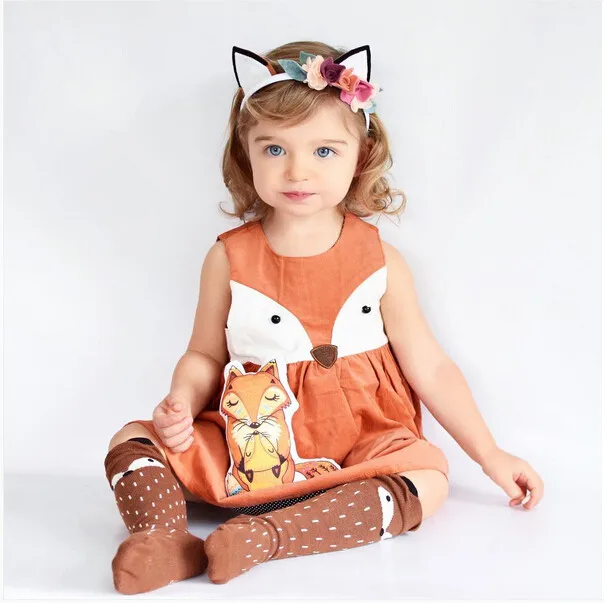 Новейшее модное платье с рисунком лисы для маленьких девочек!