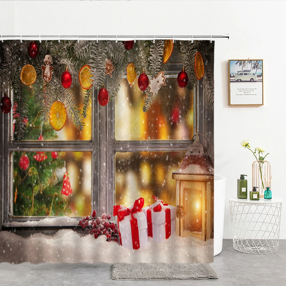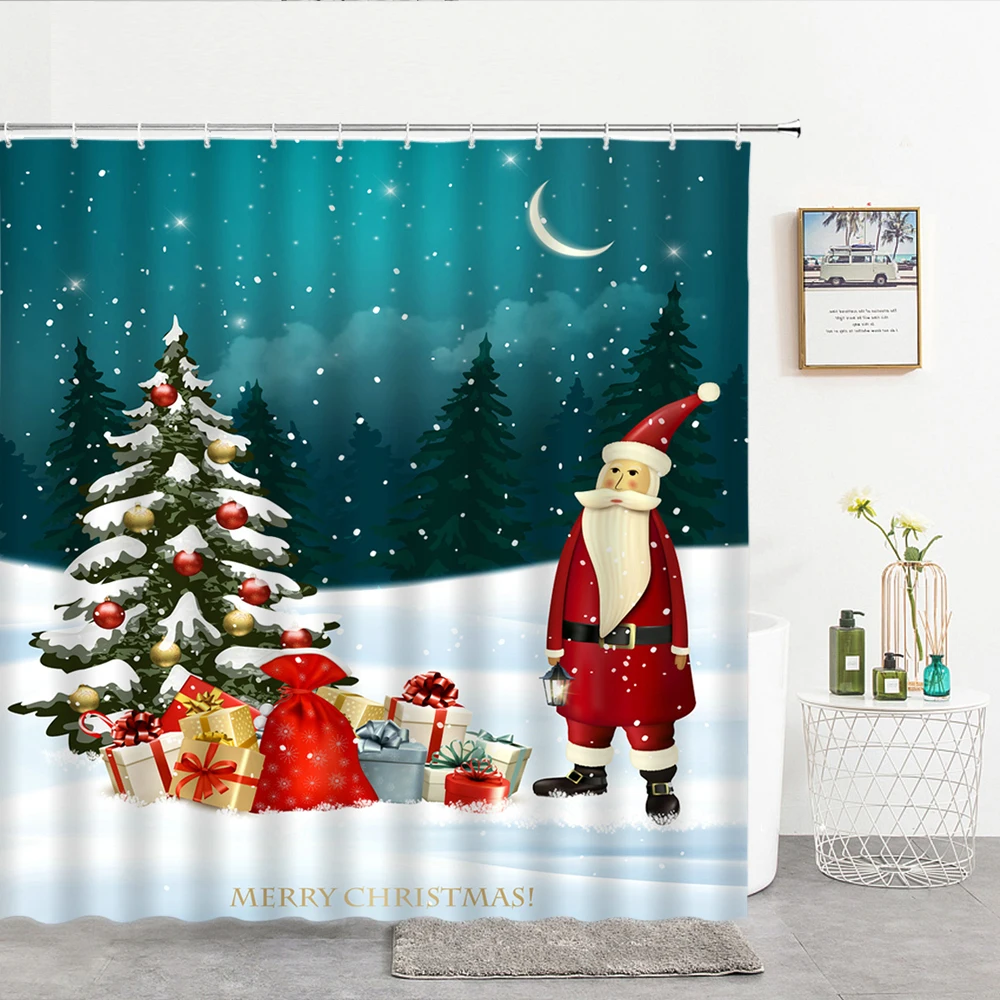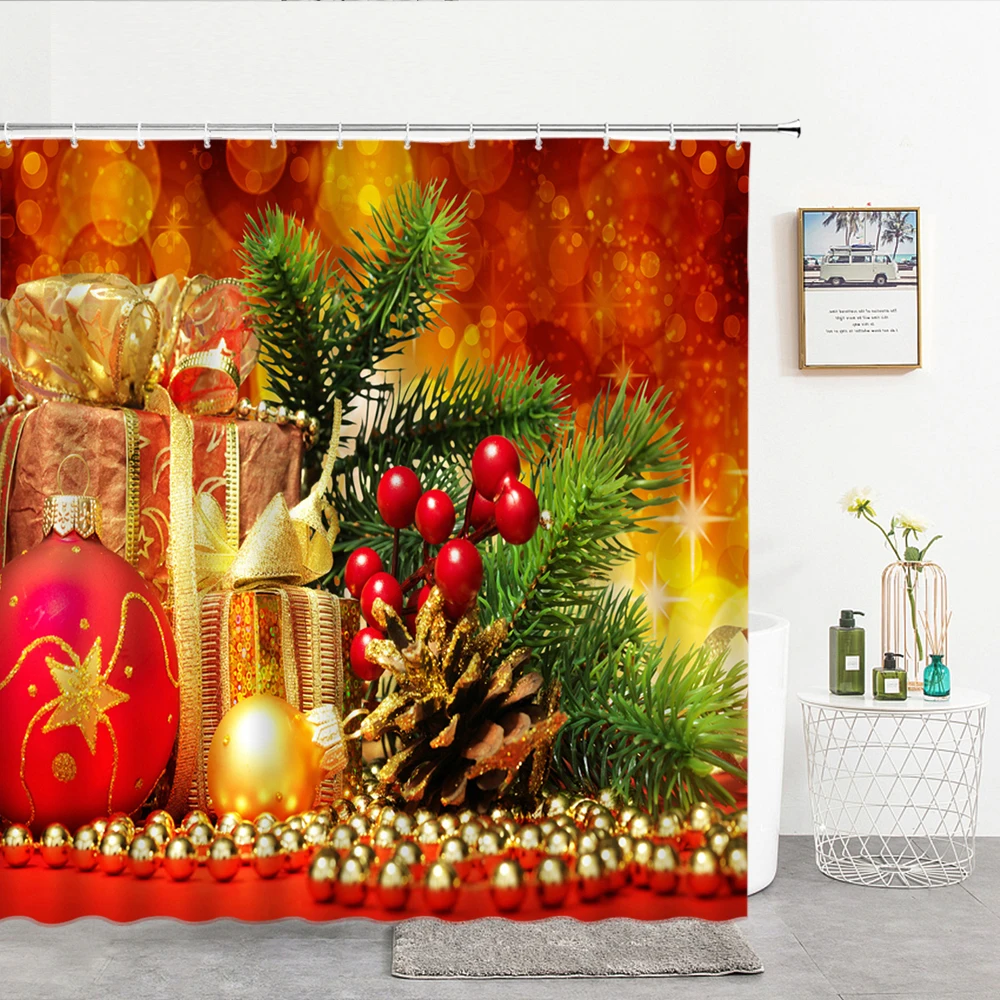 Счастливого Рождества занавески для душа с принтом счастливого Нового года Санта красный узор водонепроницаемые занавески для душа Ванная комната Декор 180x240cm