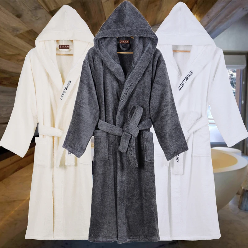 Мужской Халат с капюшоном, зимний длинный плотный теплый махровый халат из флиса, домашняя банная одежда для пар