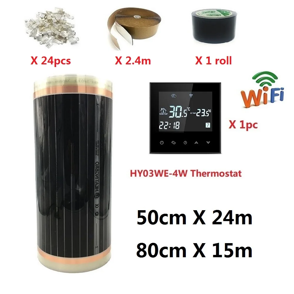 50cmX2 4 м80cmX15m инфракрасная теплая напольная нагревательная пленка AC220V 220 Втм2 коврик с WiFi термостатом хомуты и пасты