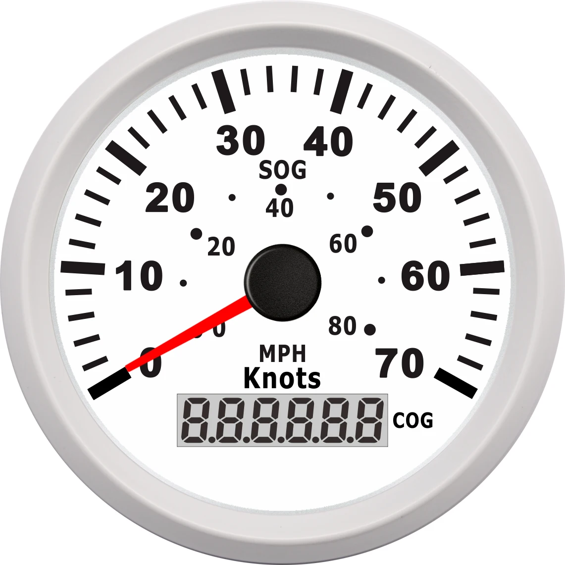 -Размер крепления: 85 мм-С указанием диапазон: 0-35Knots 0-40MPH-Сигнал: GPS-Рабочее напряжение: 9-32 в (12 В/24 В)-Подсветка: красный и индивидуальный-Режим работы: ЖК-дисплей, шаговый двигатель-COG --- направление движения