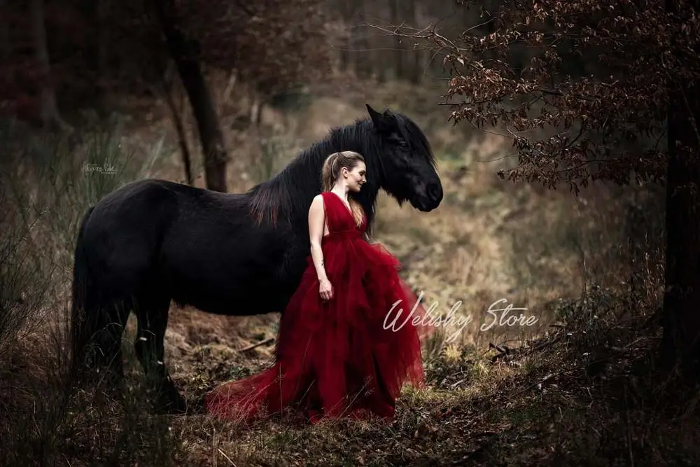 Великолепная Пышная красная юбка с оборками, длинная Тюлевая юбка s...