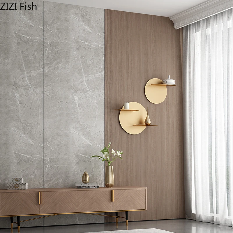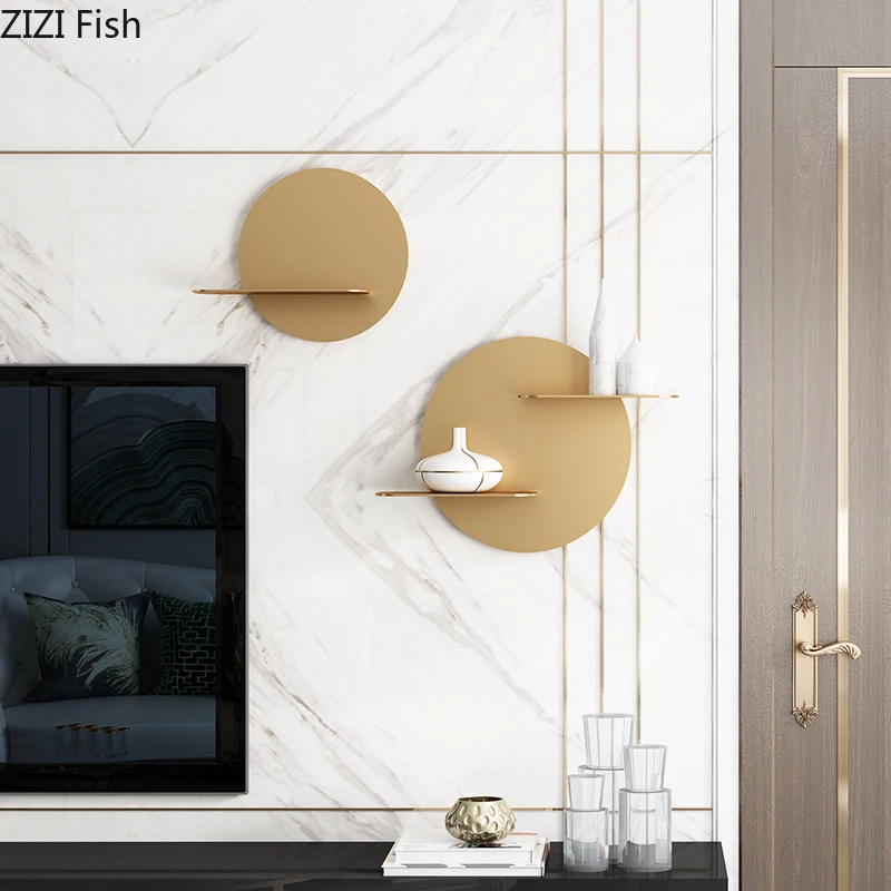 Креативная настенная металлическая полка для спальни, настенная подвесная прикроватная тумбочка, фон для телевизора, настенное украшение для дома, современные аксессуары