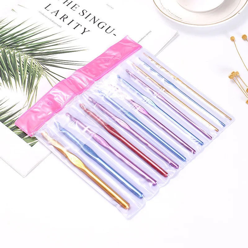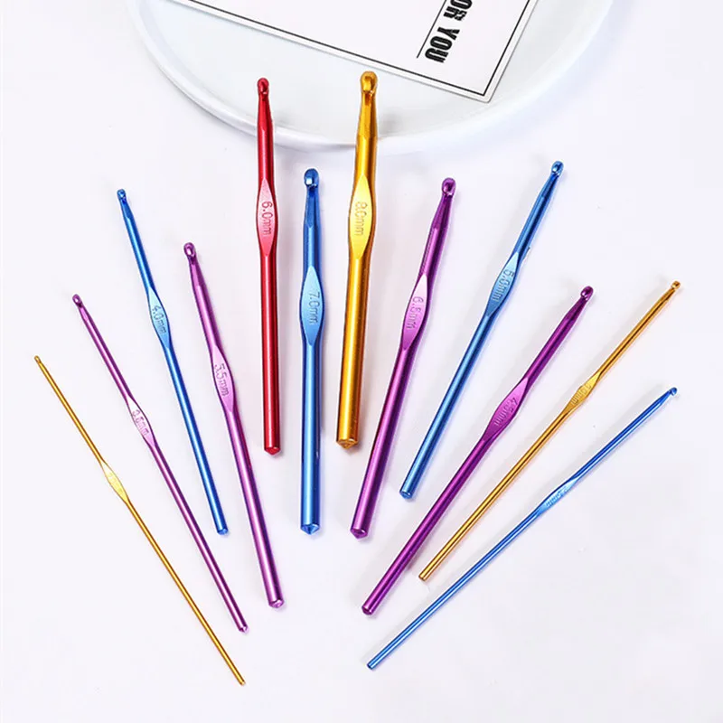 12 шт. в упаковке, новые металлические ручки вязальный крючок красочные Вязание набор игл для Алюминий бамбуковые Швейные иглы De Crochet инструменты 2 мм-8 мм