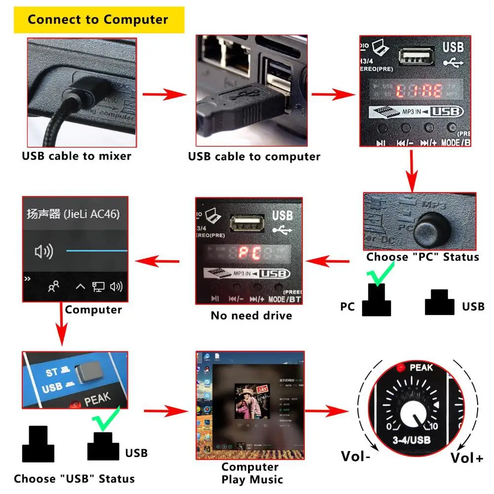 Аудиомикшер Bluetooth, USB, 4 канала, усилитель звука, миниатюрный аудиомикшер для выступления на сцене, семейных песен K