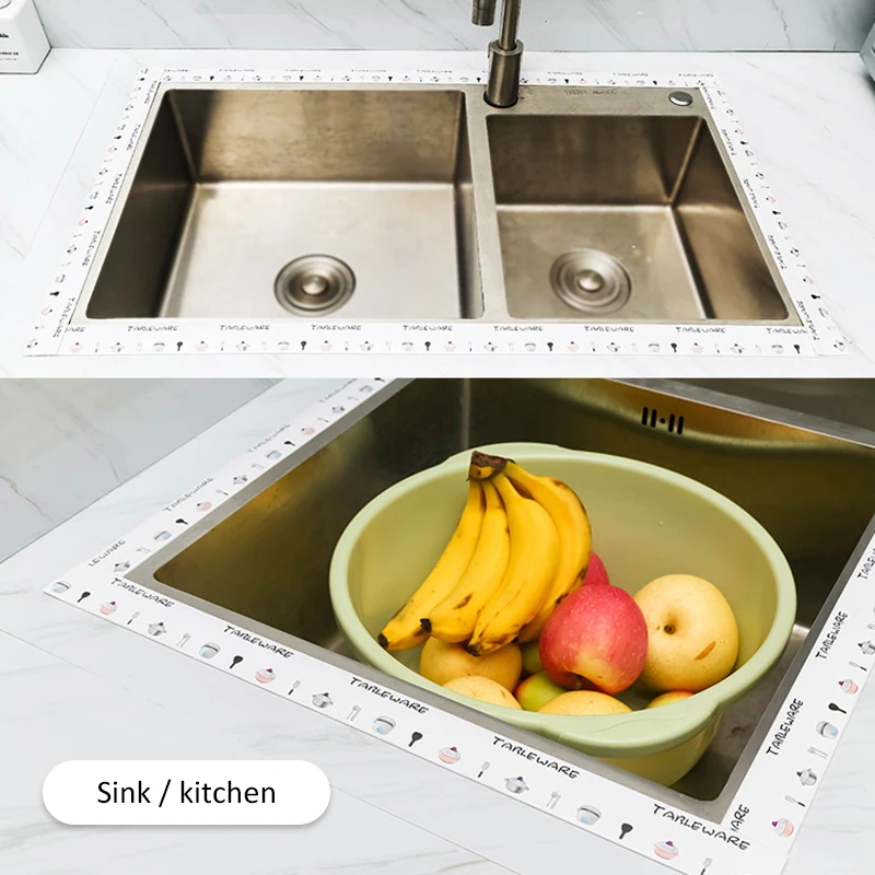 -Его можно наклеить на стык раковины и стола, легко чистить