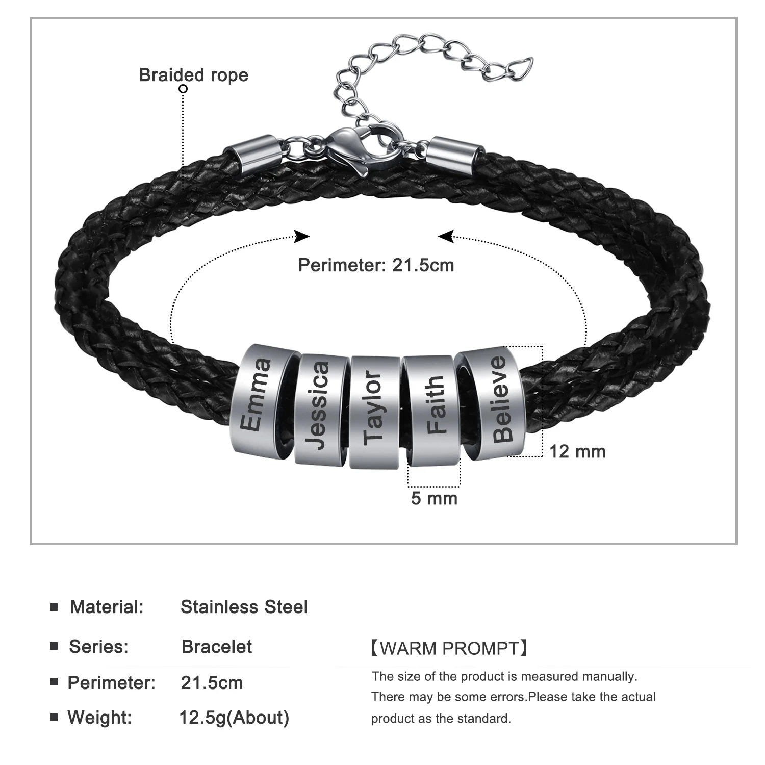 Персонализированные нержавеющая сталь имя браслеты из натуральной кожи плетеная веревка мужской браслет на заказ с, для детей от 1 года до 5 лет имена бусины мужской браслет