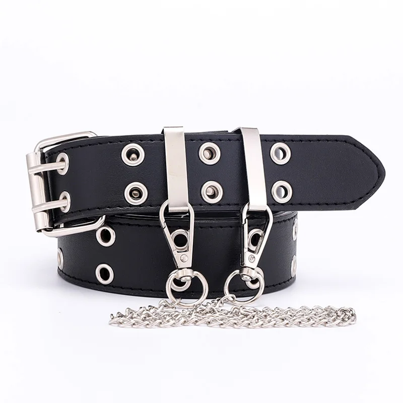 Ремень женский в стиле панк с двумя вытянутыми глазами и цепочкой