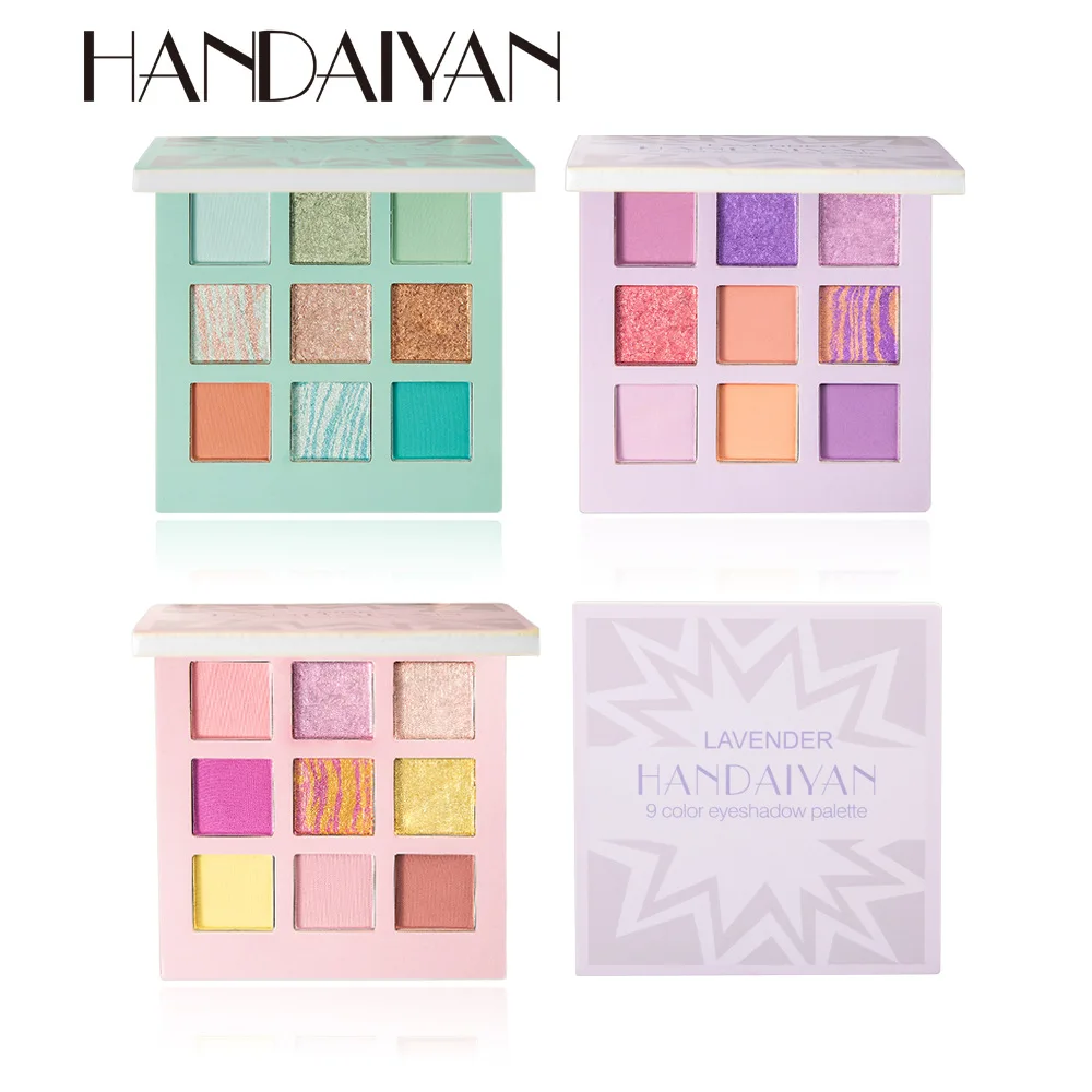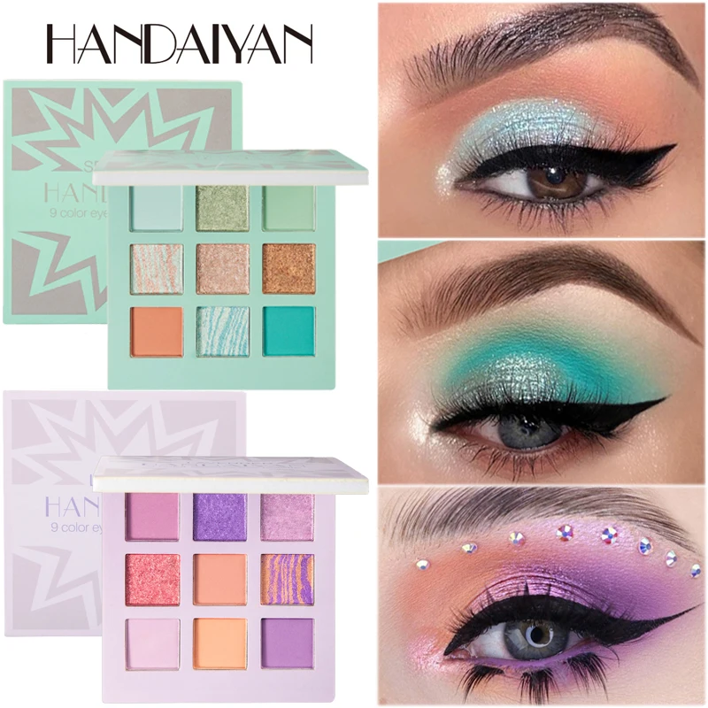 Палитра теней для век HANDAIYAN, 9 цветов, мятно-сиреневые тени для век, блестящие тени для макияжа, матовые Сияющие тени для век, пигмент, косметика